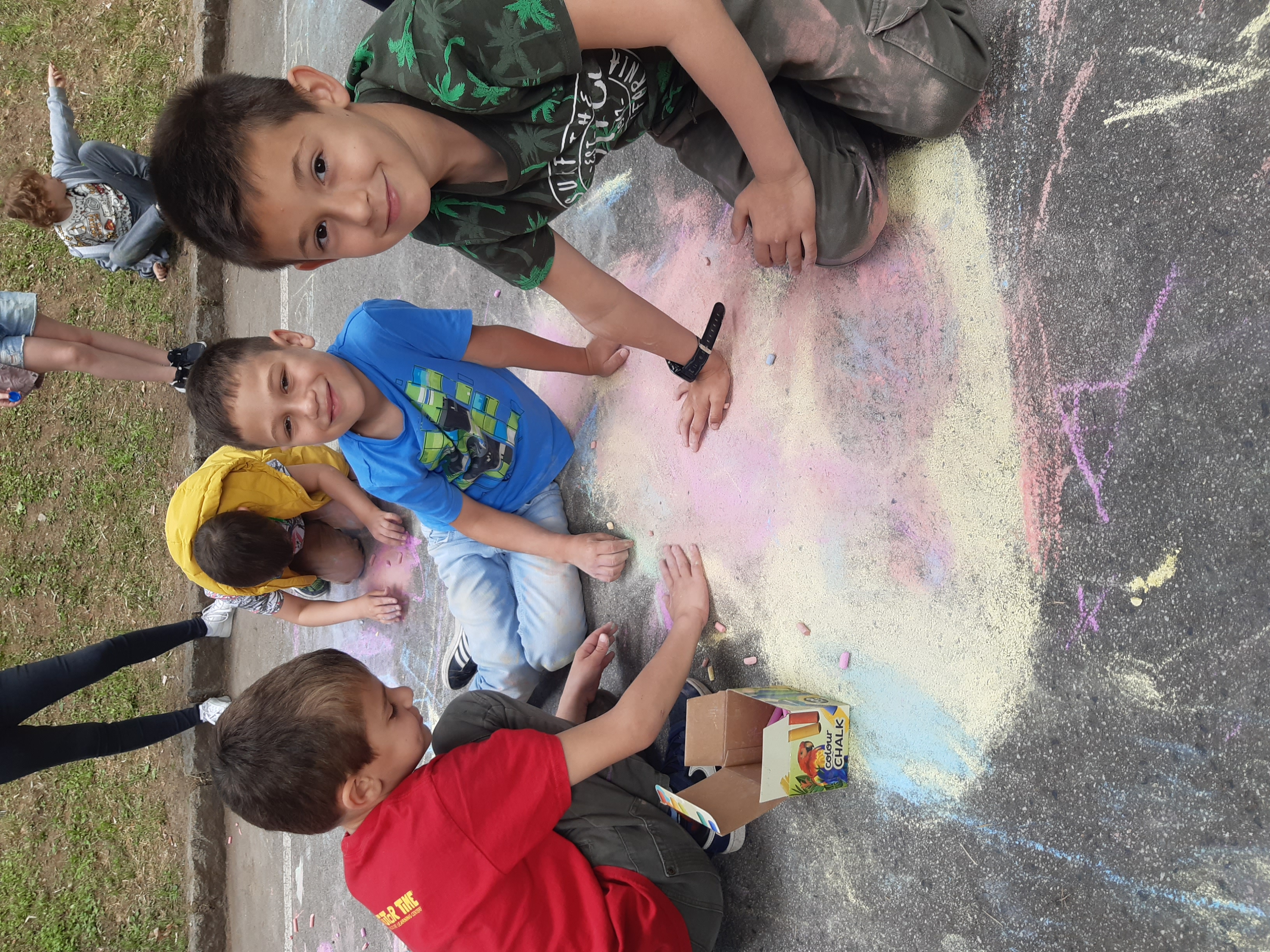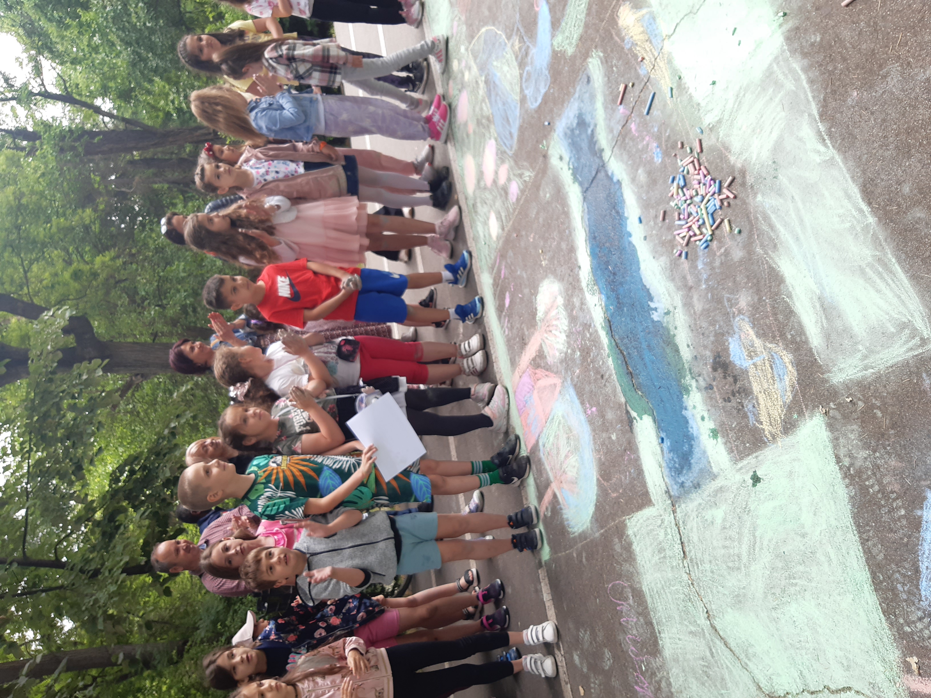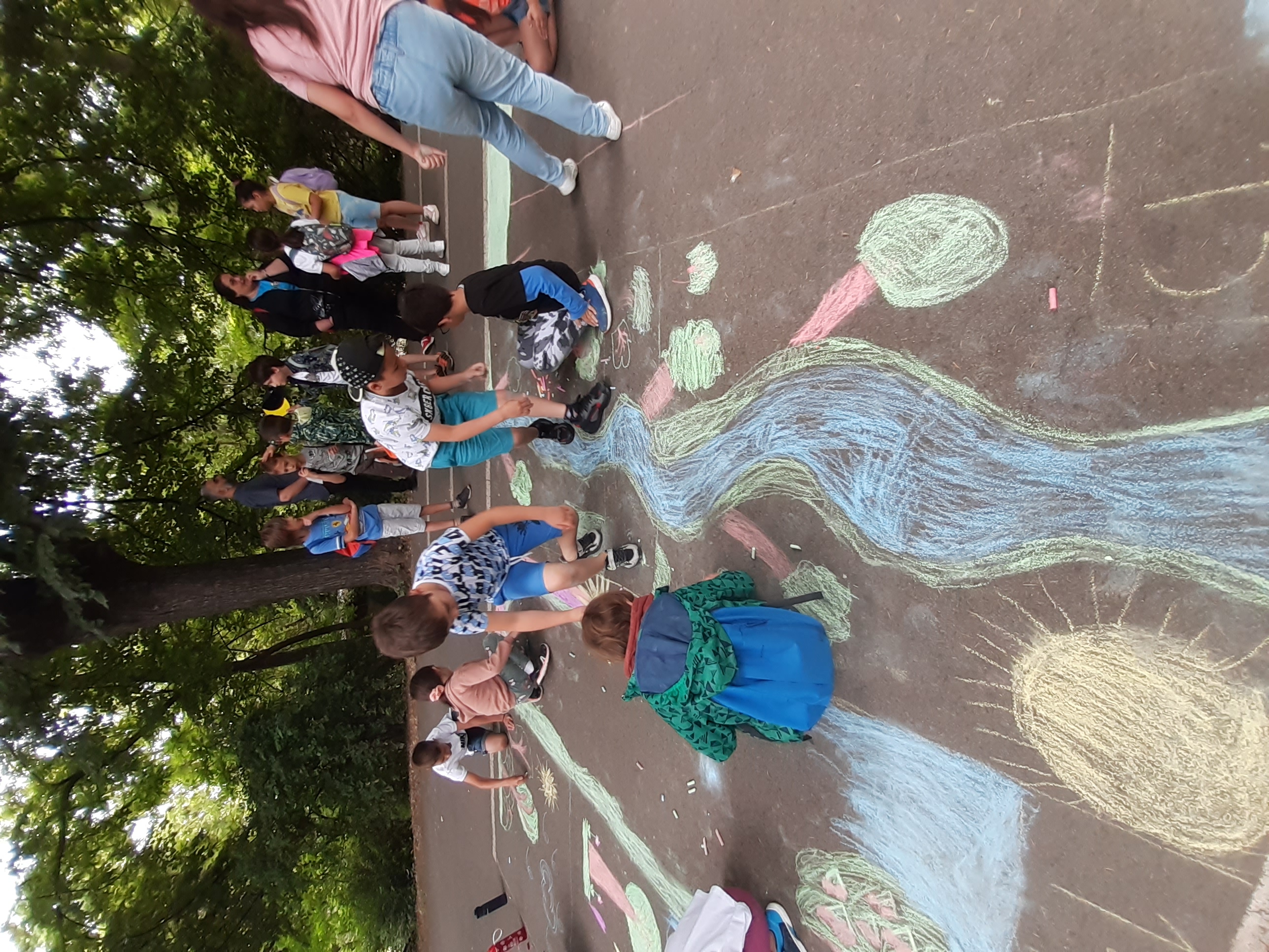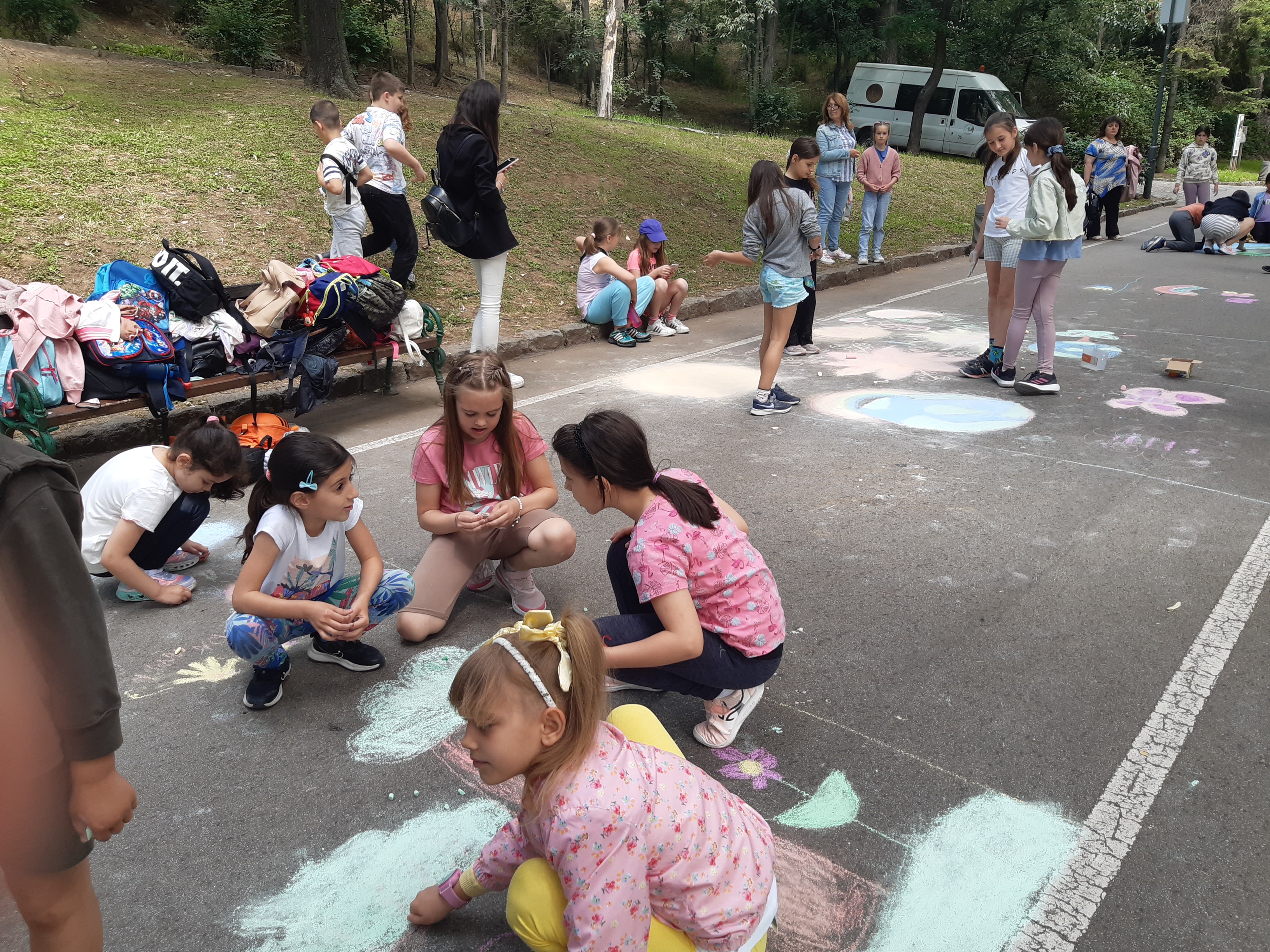 Малките художници-природолюбители с ентусиазъм и неспокойствие сграбчиха цветните тебешири и без старания изрисуваха асфалта с пъстри цветя, дървета с накацали птици върху тях, цветни дъги, чисти реки с плуващи в тях рибки и искрящи слънца, а най-използваният цвят бе зеленият. Организаторите също не устояха в изкушението и се включиха в рисуването, като най-ентусиазирана бе шефът на дирекция „ Екология “, инж. Вяра Колева. За по-малко от час Централната алея на рид „ Бунарджика “ се трансформира в разноцветно 200-метрово пано, обединило чистите детски показа и фантазии за бъдещето на нашата планета.