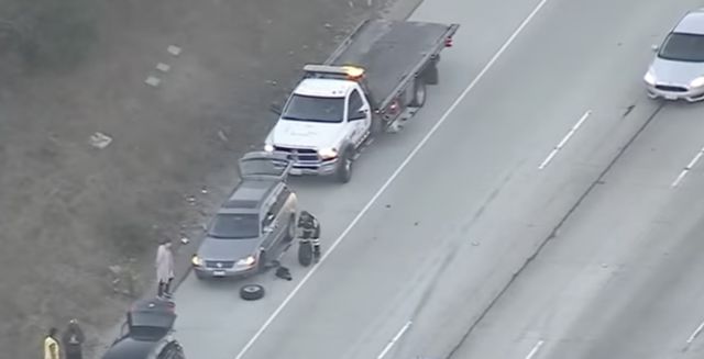 Над 30 коли бяха снимани в спешната лента на автомагистрала в Лос Анджелис, а приликата сред тях е че всички са със спукани гуми. За случая, който се е случил през миналия ден оповестяват локални медии, съгласно които на автомагистралата е имало разпиляна кутия с пирони.