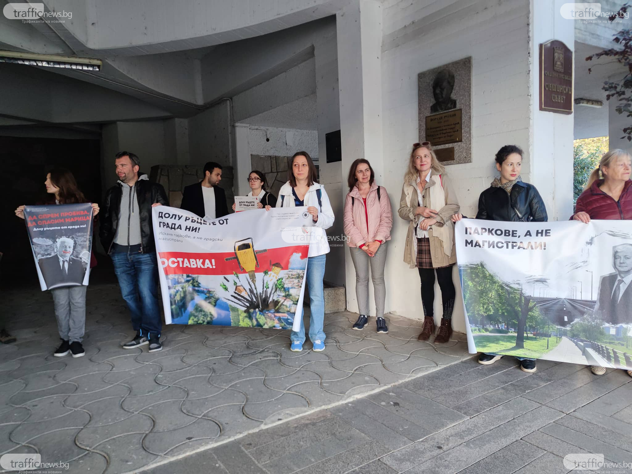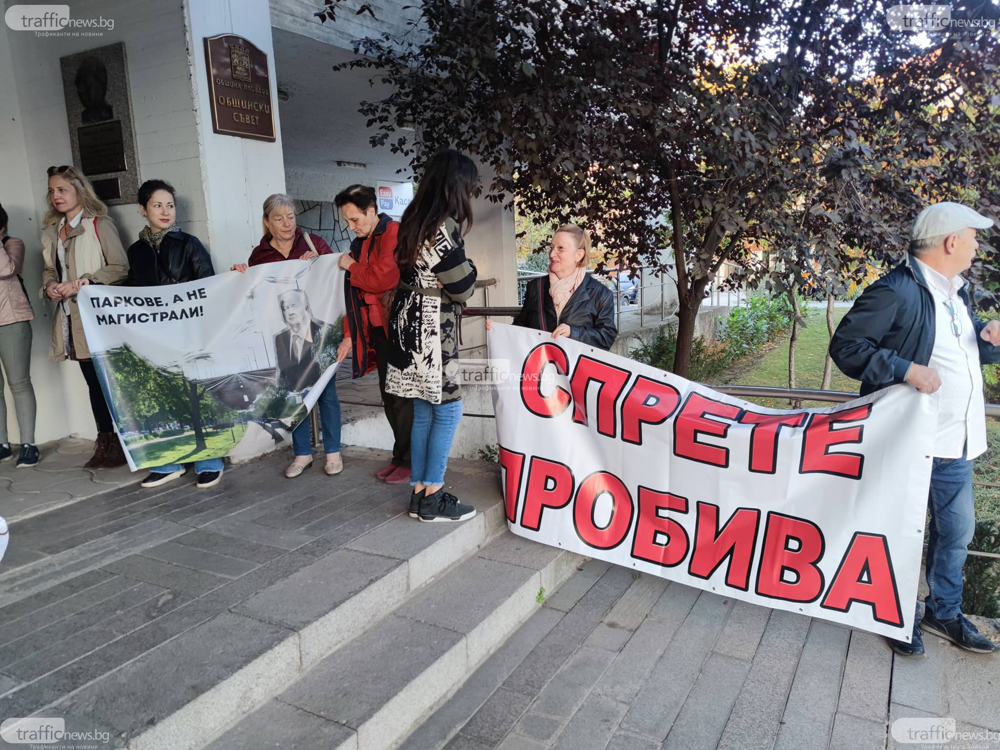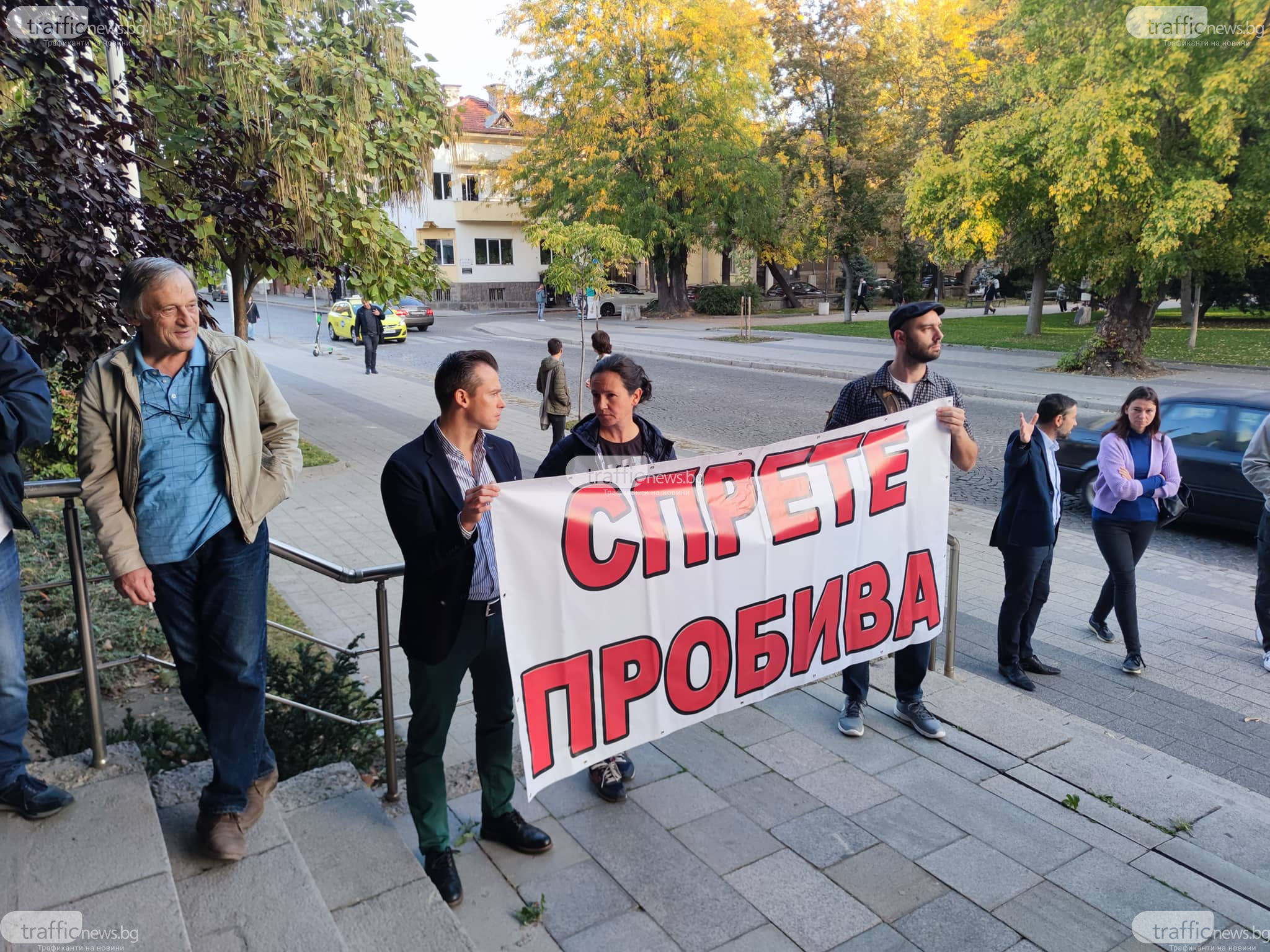 Над 30 протестиращи против пробива на Водната палата се събраха пред Общинския съвет, с цел да изразят недоволството си от плана преди изключителната сесия. Днес общинарите ще заседават по проблема, който разпали града, като ще се вземе и решението дали и за какъв брой време да бъде спрян пробива.