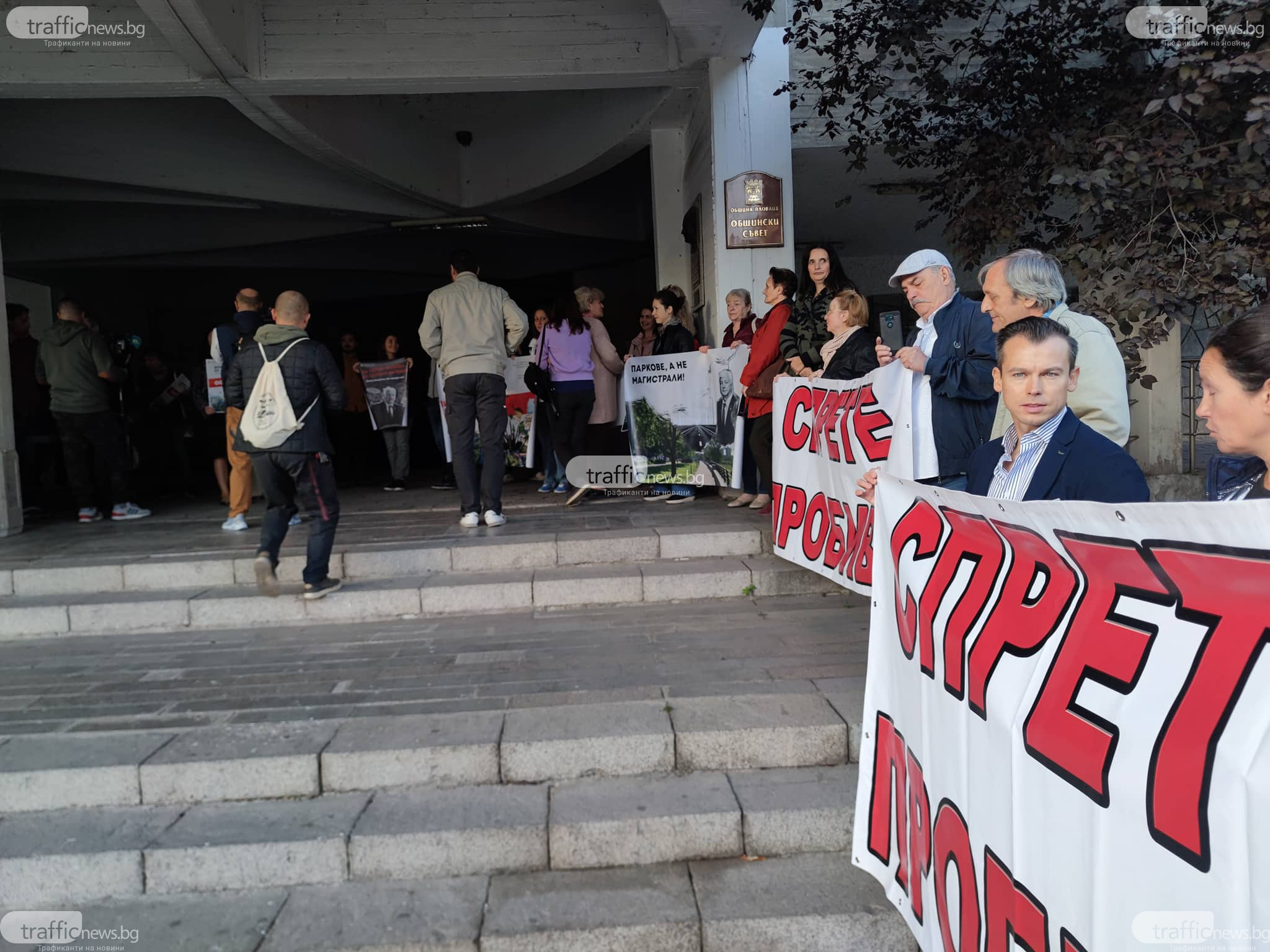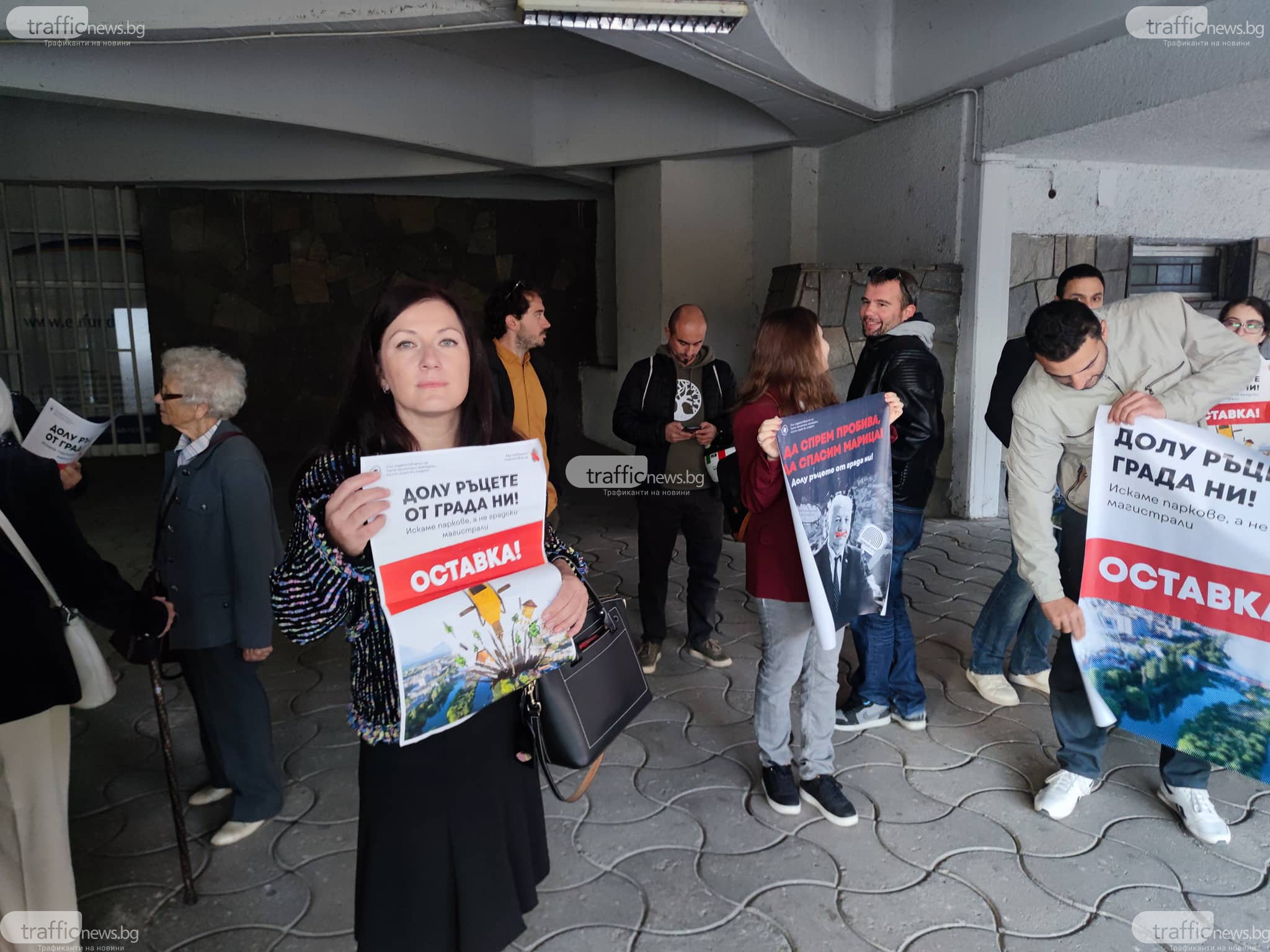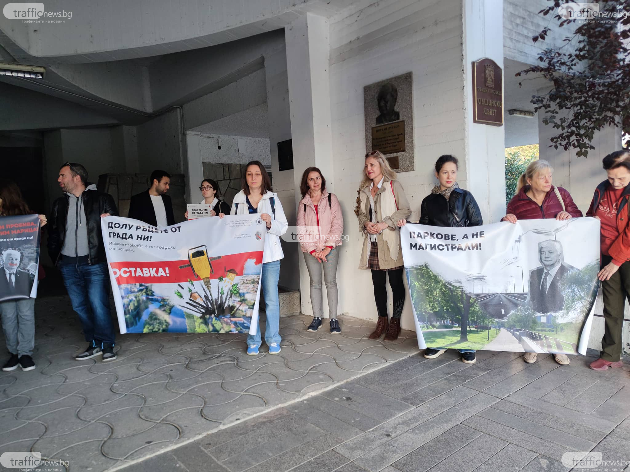 Над 30 протестиращи против пробива на Водната палата се събраха пред Общинския съвет, с цел да изразят недоволството си от плана преди изключителната сесия. Днес общинарите ще заседават по проблема, който разпали града, като ще се вземе и решението дали и за какъв брой време да бъде спрян пробива.