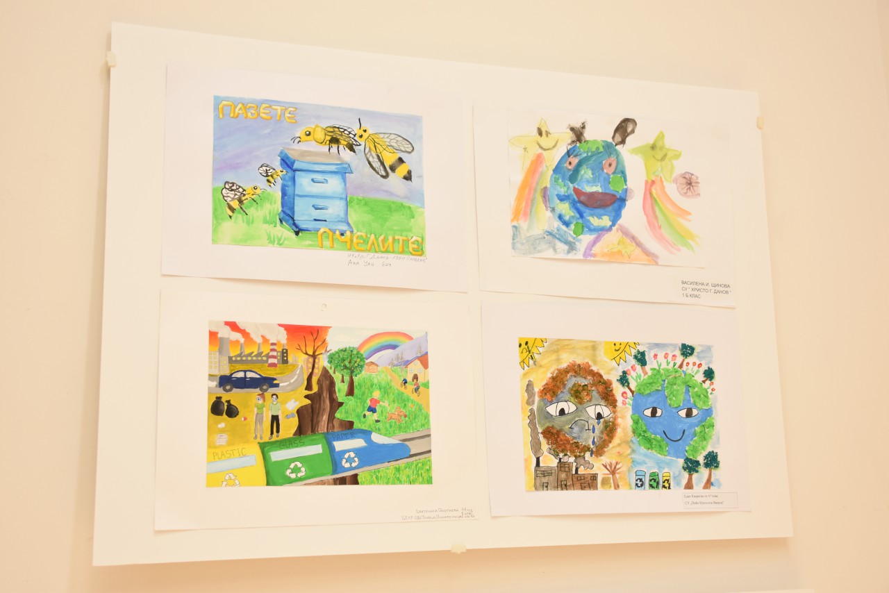 Над 300 рисунки на деца от 1 до 12 клас бяха подредени в изложбата „ Мисли зелено, събирай разделно “ в Градската художествена изложба. Тя бе открита от заместник-кмета Анести Тимчев и 6-годишния Теодор от ДГ „ Слънце “.
