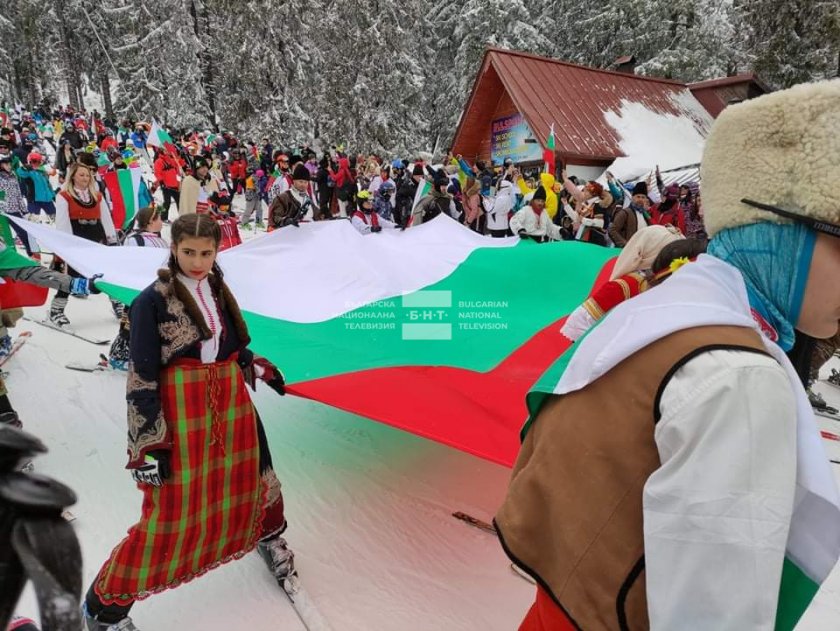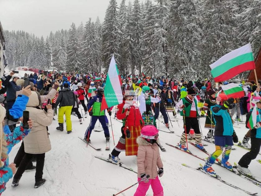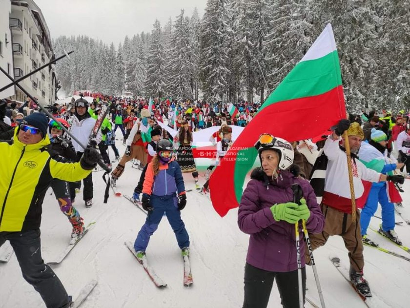 Над 700 скиори в национални носии се спуснаха с трибагреници по една от пистите в Пампорово в чест на Националния празник Трети март.