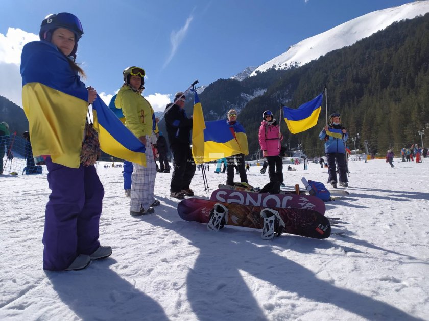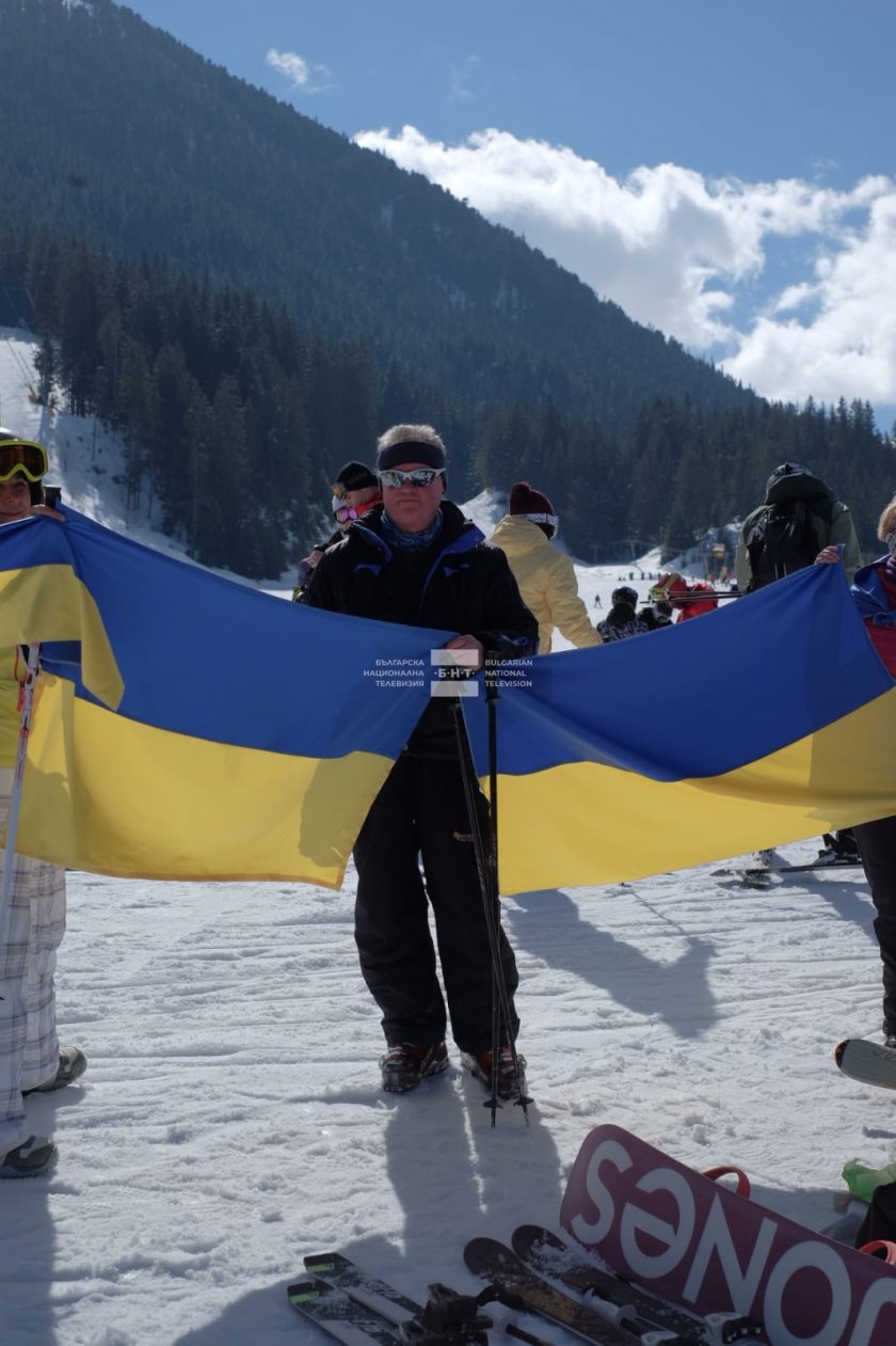 По рано през днешния ден туристи от разнообразни страни стачкуваха дружно против войната и на пистите над Банско.