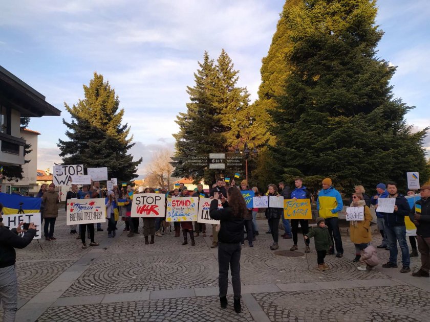 Над 100 украински и съветски жители, както и доста поданици на Банско и непознати туристи, се събраха на митинг в центъра на ски курорта довечера.