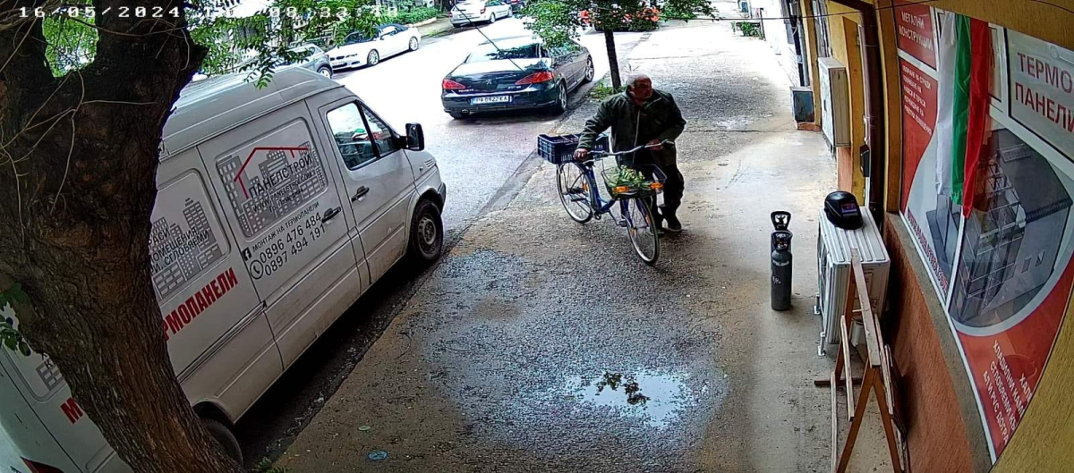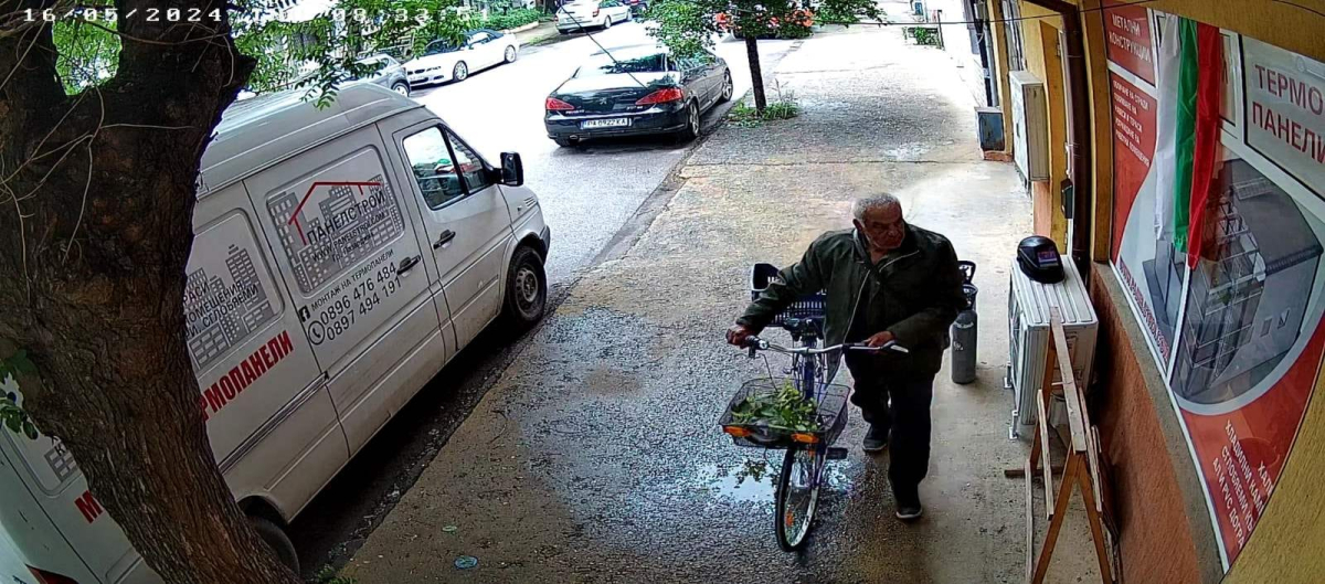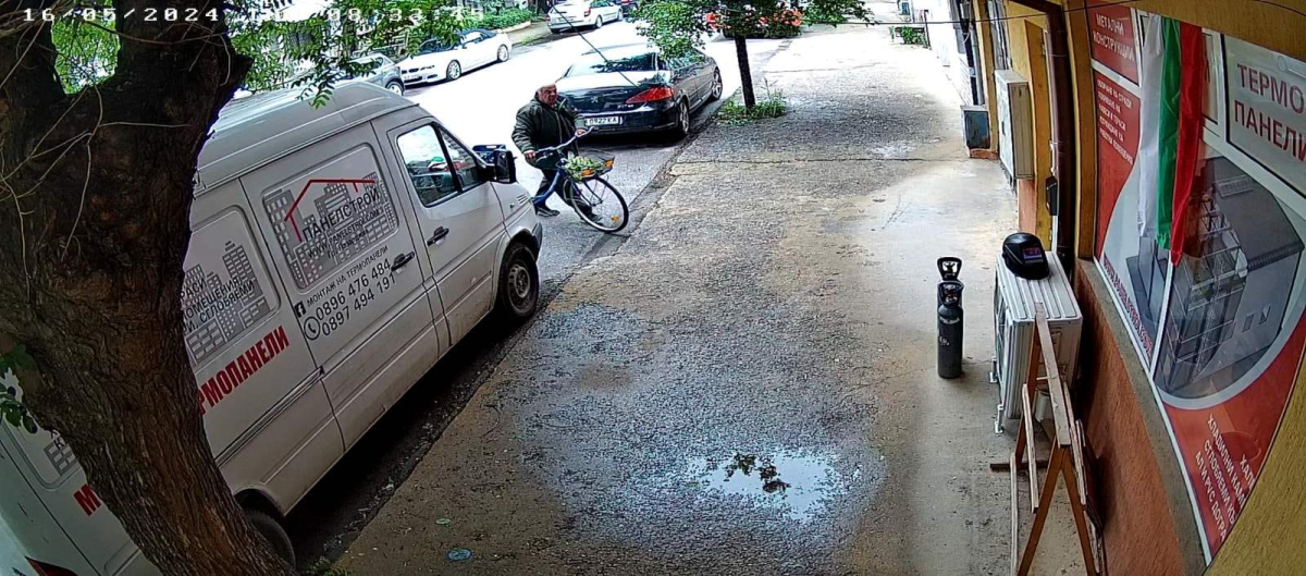 Нагла кражба извърши мъж в Пазарджик. Той е сниман от камера за видеонаблюдение да взима непозната движимост. Крадецът е на възраст над 50 години, придвижвал се е с велосипед, когато вижда оставена маска за електрожен пред търговски обект. Мъжът взима маската, слага я в коша на колелото си и бързо потегля.