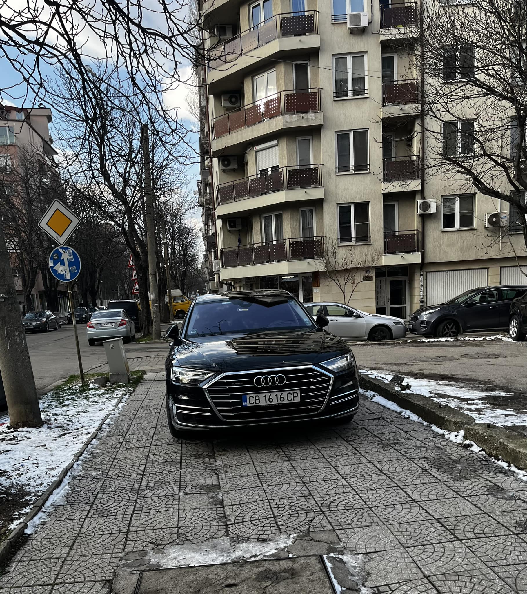 Ауди с полицейски стикер блокира тротоар, шофьорът редовно паркирал там СНИМКА
