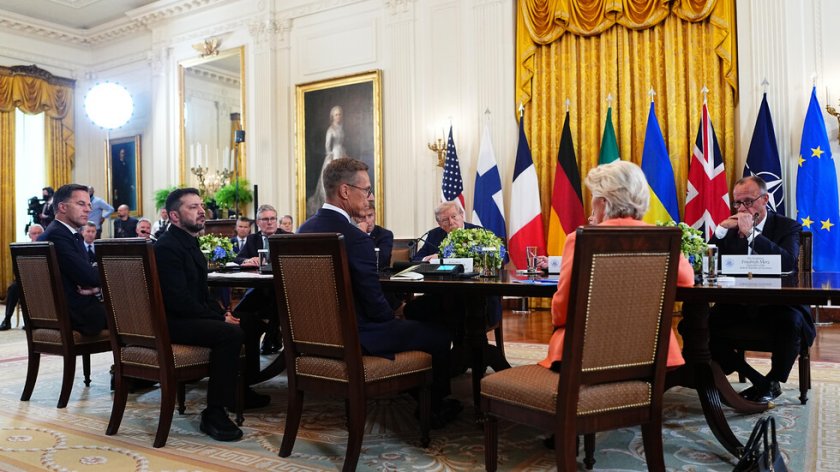 Освен това Тръмп несъмнено е бил нервиран, защото с своите 190 см той постоянно е най-високият човек в стаята. Не и тук, където Рюте и Стуб са съвсем на идентичен растеж с президента на Съединени американски щати, а Мерц ги гледа отвисоко. Също по този начин, Макрон (който е напълно малко по-нисък от Стармър) е единствено малко по-нисък от Тръмп на това изображение, което е или оптична заблуда, или дело на специфични токчета.