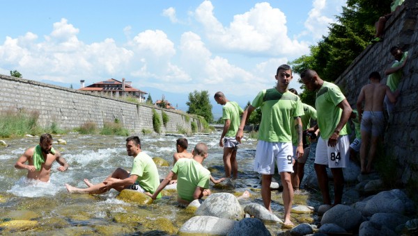 След заниманието, което бе много натоварващо, футболистите използваха студените води на река Глазне за възобновяване.