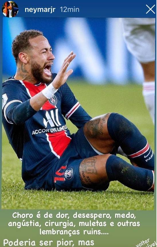 “Сълзите ми бяха от болежка, обезсърчение, боязън, тъга, интервенция, патерици и други ужасни спомени”, написа бразилецът в Instagram. “Можеше да е по-лошо, само че още един път Бог ме избави от нещо сериозно”, добави Ней Джуниър.