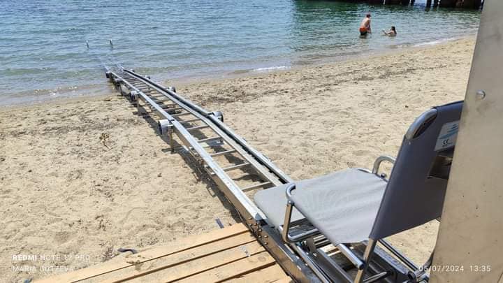 " Ето отношението на гръцката страна към хората с увреждания, които употребяват инвалидни колички! И е хубаво, и е гратис! Плажът е Геракини, сред Касандра и Ситония, Халкидики. Има и още един подобен, след Солун, посока Касандра. Специален уебсайт демонстрира всички плажове в Гърция с подобен достъп. Както виждате, има и специфична поставка под чадъра, с цел да не затъва в пясъка инвалидната количка. Уредът за влизане във водата се зарежда със слънчева батерия. Колко малко му би трябвало на човек, с цел да усети, че е на море! "