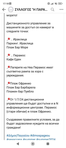 " В Кавала, на " Перигиали ", също има платформа! Наистина, това е огромна грижа за хората с увреждания! За тях, които са приковани, на легло в една стая, това е парадайс. Да отидат измежду хора, да се потопят във водата, в тая горещина, е необикновено преживяване. От Общината при започване на сезона се слагат чадъри в свободните зони, инсталират се съблекални и душове, кошчета за отпадък! Есента, на 1 октомври, всичко се прибира. Това тук няма по какъв начин да стане. На всяка крачка, желаят пари! Браво на гърците! Можем единствено да се учим от тях ", написа друга българка.