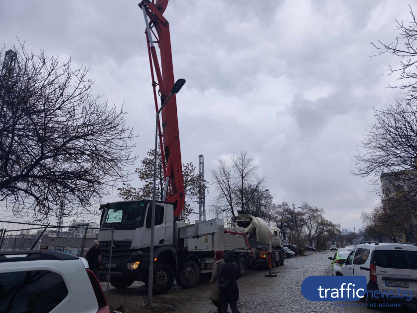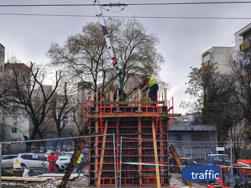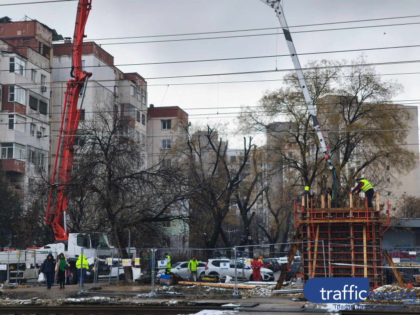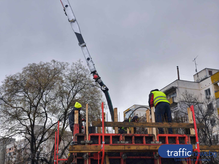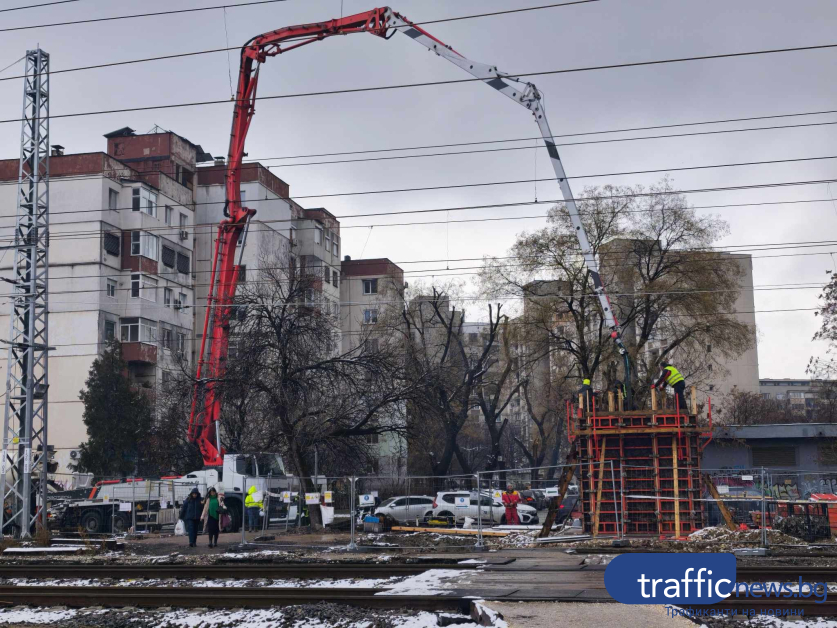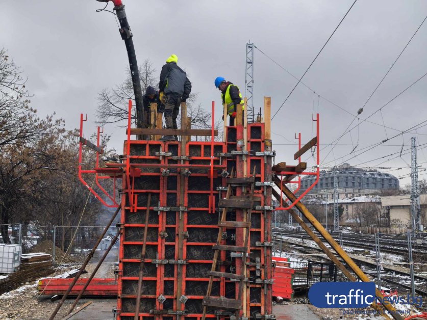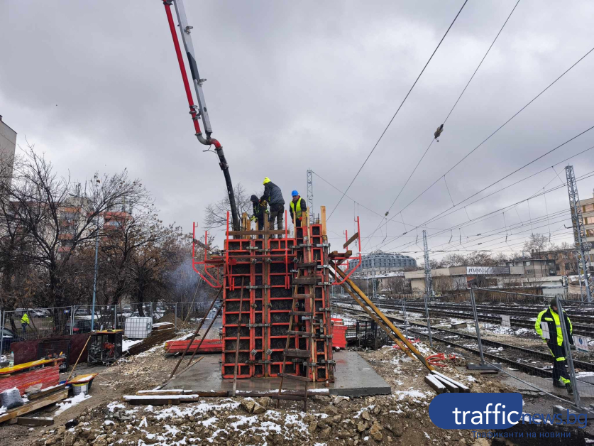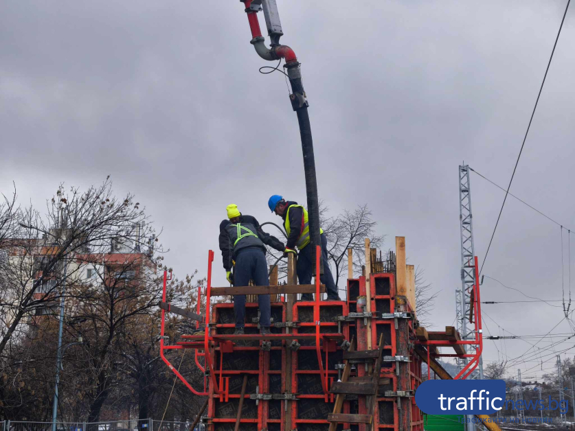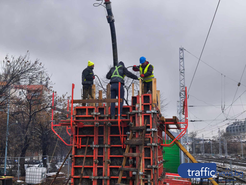 Наливат бетона за южната кула на пасарелката зад Сточна гара