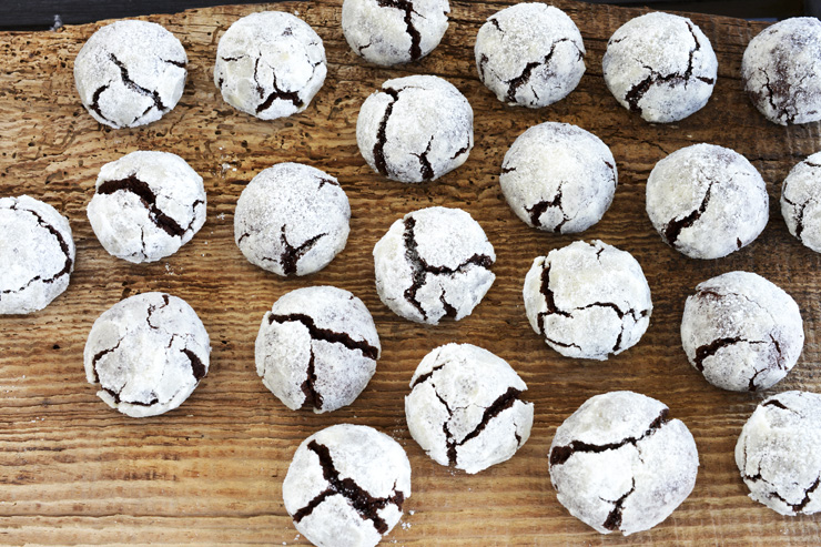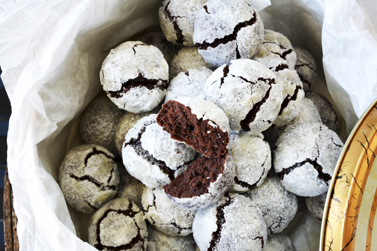 Наричат ги дребни сладки, само че размерът им не дефинира насладата,която носят. Те са с нежна, сходна на трюфел вътрешност, натоварен шоколадов усет и напукана, хрупкава повърхнина.Те се топят в устата. Те са сладка премия, хапка за закуска, за празненство, за подарък... Използвах 180 г мрачен шоколад, 200 г брашно, 60 г масло, 120 г кристална захар, 2 яйца, 1 ч. лъжичка бакпулвер, ванилия, 3 с. лъжици кристална захар и 150 г пудра захар, за овалване. Как ги направих: На водна баня разтопих шоколада и маслото. Разбих яйцата със захар и ванилия. Смесих с разтопения шоколад и разбърках. Добавих пресято брашно и бакпулвер. Разбърках добре сместа, покрих с фолио и прибрах в ледник за една нощ.