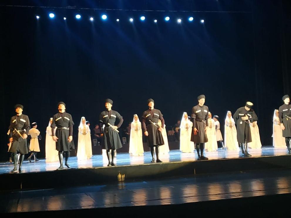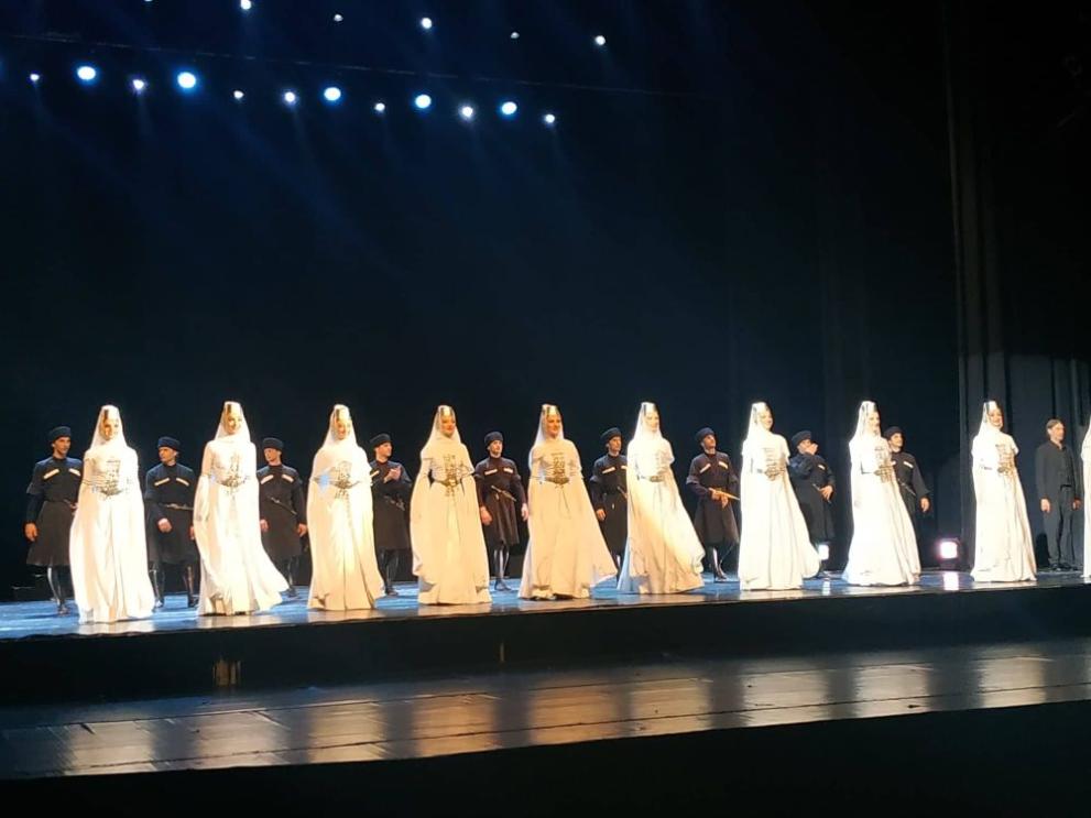 Под съпровода на " жива " музика от седем музиканта на сцената бяха показани танци със саби и ножове, замайващ темп, танцуване на пръсти и колене, а за край плавното напредване на булките на „ Сухишвили “ постави свършек на спектакъла. Целите в бяло те превзеха сцената с нежното си наличие.
