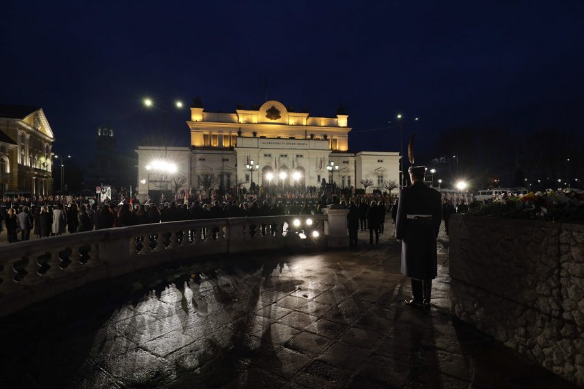 Народ, който допусне да подменят историята му, е жертван да изгуби и свободата си, сподели президентът в словото на тържествената заря. Тържествена заря-проверка по случай националния празник на България се организира в София. Кулминацията на тържествата е на площад " Народно заседание ".