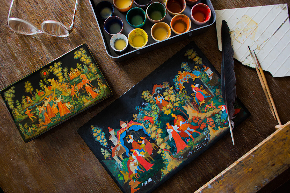 Universal History Archive/Getty Images Палехската лакова миниатюра е относително млад поминък. Талантливи иконописци и майстори на религиозна живопис и църковни картини от село Палех (област Иваново) стартират работа в него след революцията. През 1918 година се появява Палехското художествено декоративно обединяване.