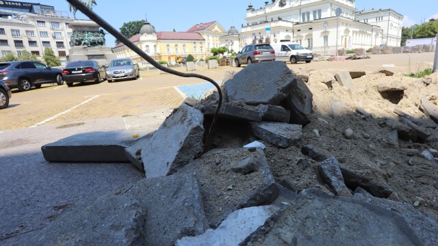 Народното събрание осиротя – в постройката към този момент няма депутати, а поради ремонт площадът пред Народното събрание също не наподобява на себе си. Емблематичните жълти павета, знак на остаряла София и на политическата власт, са отстранени за планов ремонт на пространството.