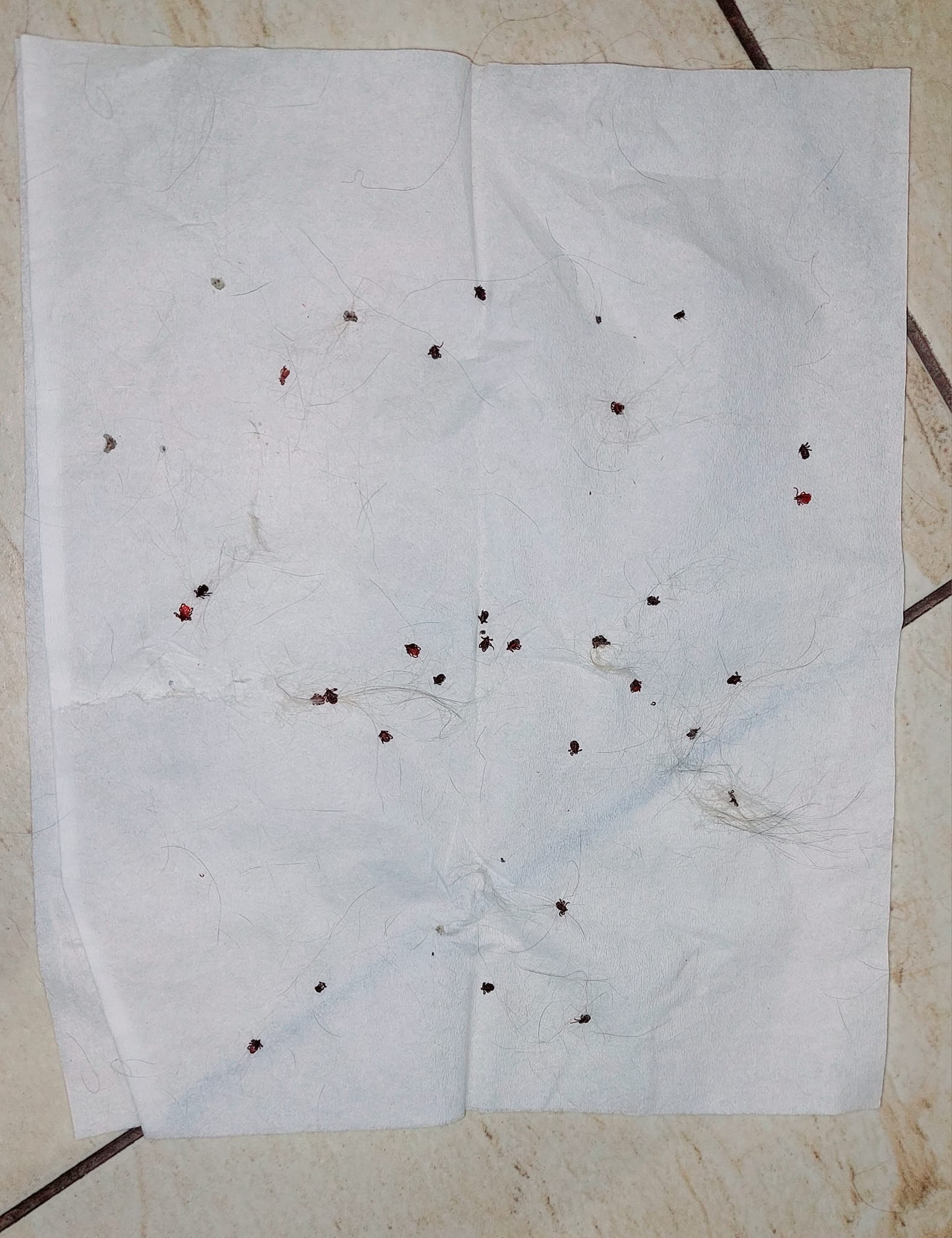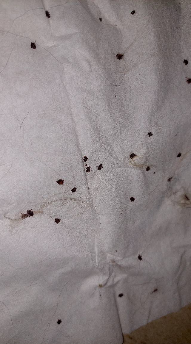 35 бр. НЕЩАСТНИ ДОЛНИ КЪРЛЕЖИ, някои от които бяха още живи, основно сред пръстите, към възглавничките, от горната страна на лапичките, високо горе и по четирите крайника и 1 долна нещастна тлъста БЪЛХА за лукс, цялостна с кръв. Ая е обезпаразитена с Вектра пипета преди 5 дни. С две думи: АД от Данте!