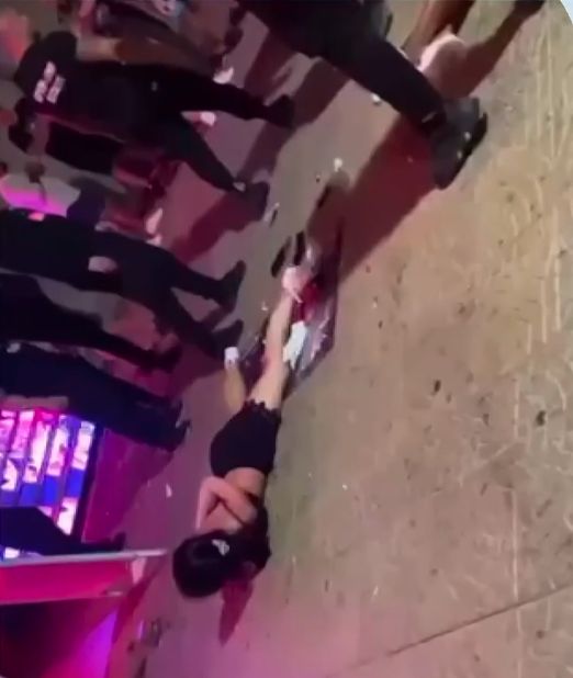 Не е ясна повода за държанието на охранителите. Момичето е с вързани ръце и е проснато по очи на метри от входа на заведението. Момчето, когато пробва да му помогне, също е повалено на земята от охранителите.
