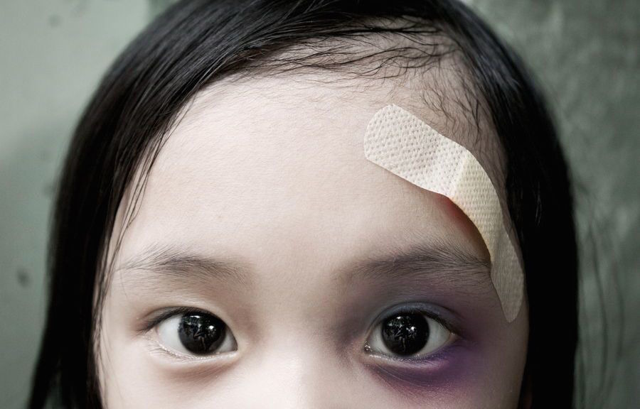 Нормално е дребните деца да се нараняват по време на игра, само че има физически белези, които няма по какъв начин единствено да си е предизвикало. Наложително е да се следи за пострадвания на части от тялото, по които инцидентното пострадване е неправдоподобно, като да вземем за пример по бузите, гърдите или бедрата. Също белези, които демонстрират следи от ръка или пръсти, изгаряния от цигари, белези от човешка захапка, фрактури на кости, изключително при деца под 2 години, следи от попарване с вряла вода, такива, които се разливат, маркирайки пътя на водата по този начин, както е била плисната върху детето или следи от синини по раменете, краката или тялото на детето – там, където е било натискано, с цел да седи или стои в доста гореща вода.