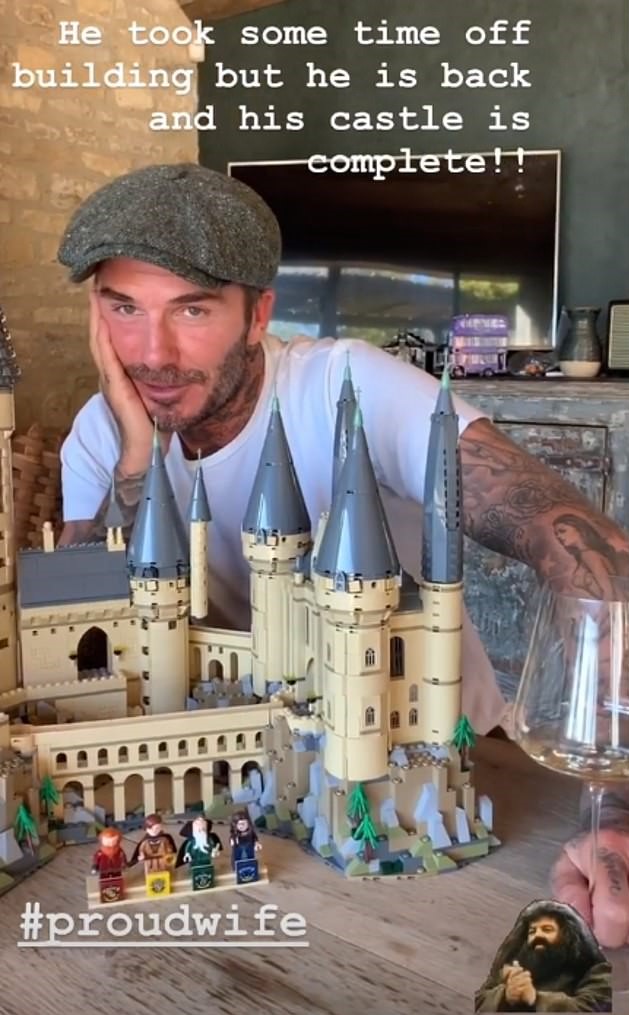 Наскоро тя се пошегува, че новото му занимание е „ да унищожава живота й “. И въпреки всичко Виктория Бекъм остави брачна половинка си Дейвид да се забавлява по детски, завършвайки замъка Лего Хогвартс на осемгодишната им щерка Харпър Севън.
