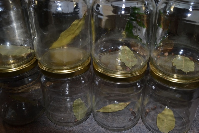 В дъното на всеки буркан поставете 1-2 дафинови листа, сладостен пипер, по-късно не слагайте месото компактно.