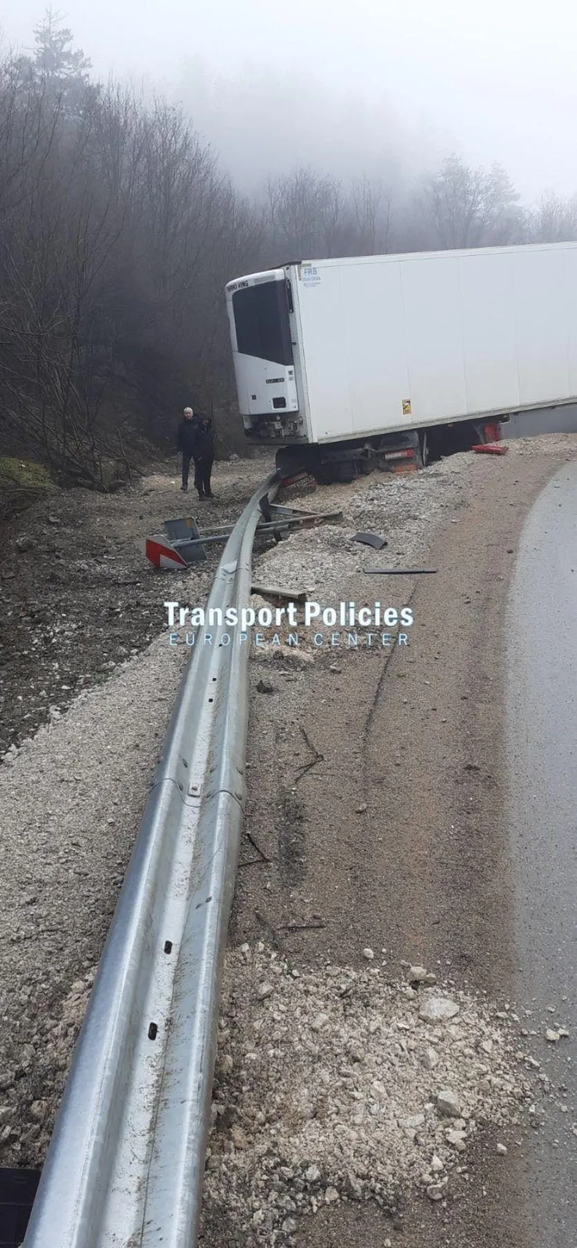 ТИР самокатастрофира на пътя между Мездра и Ботевград СНИМКИ