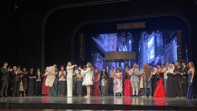Всички общо 50 солисти, артисти и балетисти, участващи в хитовия мюзикъл, бяха с Натали на сцената в този доста прочувствен за нея миг. Те й пожелаха лека бременност и леко раждане. Под бурните овации на артистите и на феновете синоптичката слезе от сцената и зае мястото си измежду публиката, където изгледа тричасовия мюзикъл в компанията на майка си.