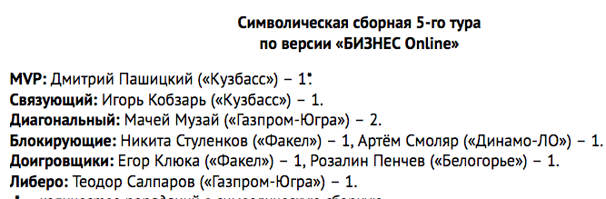 РЕЗУЛТАТИ ОТ 5-ИЯ КРЪГ В СУПЕРЛИГАТА НА РУСИЯ: