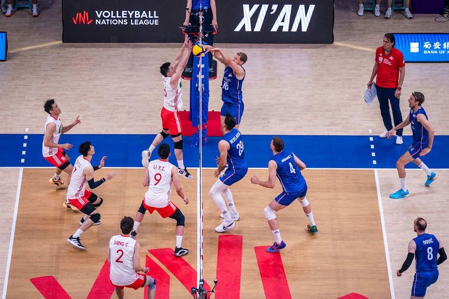 Националният тим на Китай реализира малко изненадваща първа победа във Волейболната Лига на нациите за мъже. Воденият от Витал Хейнен отбор, който се завърна в комерсиалната конкуренция след едногодишно неявяване, удари Сърбия с 3:0 (25:23, 25:23, 25:20) във втората си среща от шампионата в Група 3 на Лигата, на който е хазаин, игран този следобяд пред към 3000 фенове в залата в Сиан.