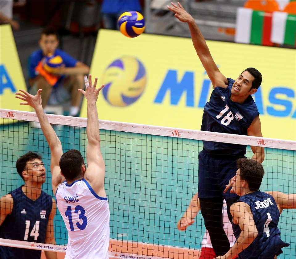 Националният тим на Съединени американски щати за мъже реализира осмата си победа в шампионата Лига на нациите по волейбол. В мач от 14-ия кръг, игран в зала " Колодрума " в Пловдив, американците се постановиха с 3:1 (14:25, 25:20, 29:27, 26:24) над Сърбия.