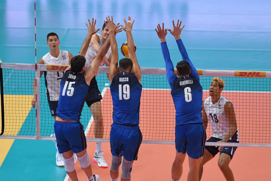 Двата отбора изиграха още два спомагателни гейма, които приключиха 25:23 и 15:11 в интерес на " Скуадра адзура ". Иначе най-оспорвана бе първата част, в която равенството се резервира до 23:23, само че американците постановиха волята си и завоюваха гейма с 25:23. В останалите два гейма Съединени американски щати преобладаваха от началото до края и записаха чиста победа.