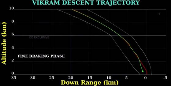 Хоризонталната скорост на Викрам по това време е 48 метра в секунда, а отвесната скорост - 60 м/сек. - тогава Викрам е единствено на 1 километър от плануваното място за кацане. Властите одобряват, че Викрам и луноходът Прагян са аварирали.