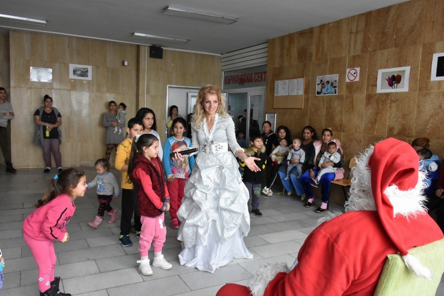 С възклик “Хо-хо-хо!” и със звънче в ръка изненадващият посетител влезе във фоайето, където децата се бяха събрали и дружно със Снежанка викаха: “Дядо Коледа, къде си? Молим те ела при нас! Чакаме те!” “Бяхте ли послушни тази година, ядохте ли, спортувахте ли, учихте ли британски? – обсипа с въпроси дребните пациенти Белобрадият Старец. Защото моите джуджета измайсториха за вас дарове!” Децата дадоха отговор със мощен глас: “Да!” Преди Дядо Коледа да развърже тежкия чувал, децата проведоха празненство с песни и лапландски танци. Освен тях, Добрият дъртак мина по стаите, с цел да зарадва и лежащоболните деца. На всички пожела да бъдат здрави и доста щастливи.