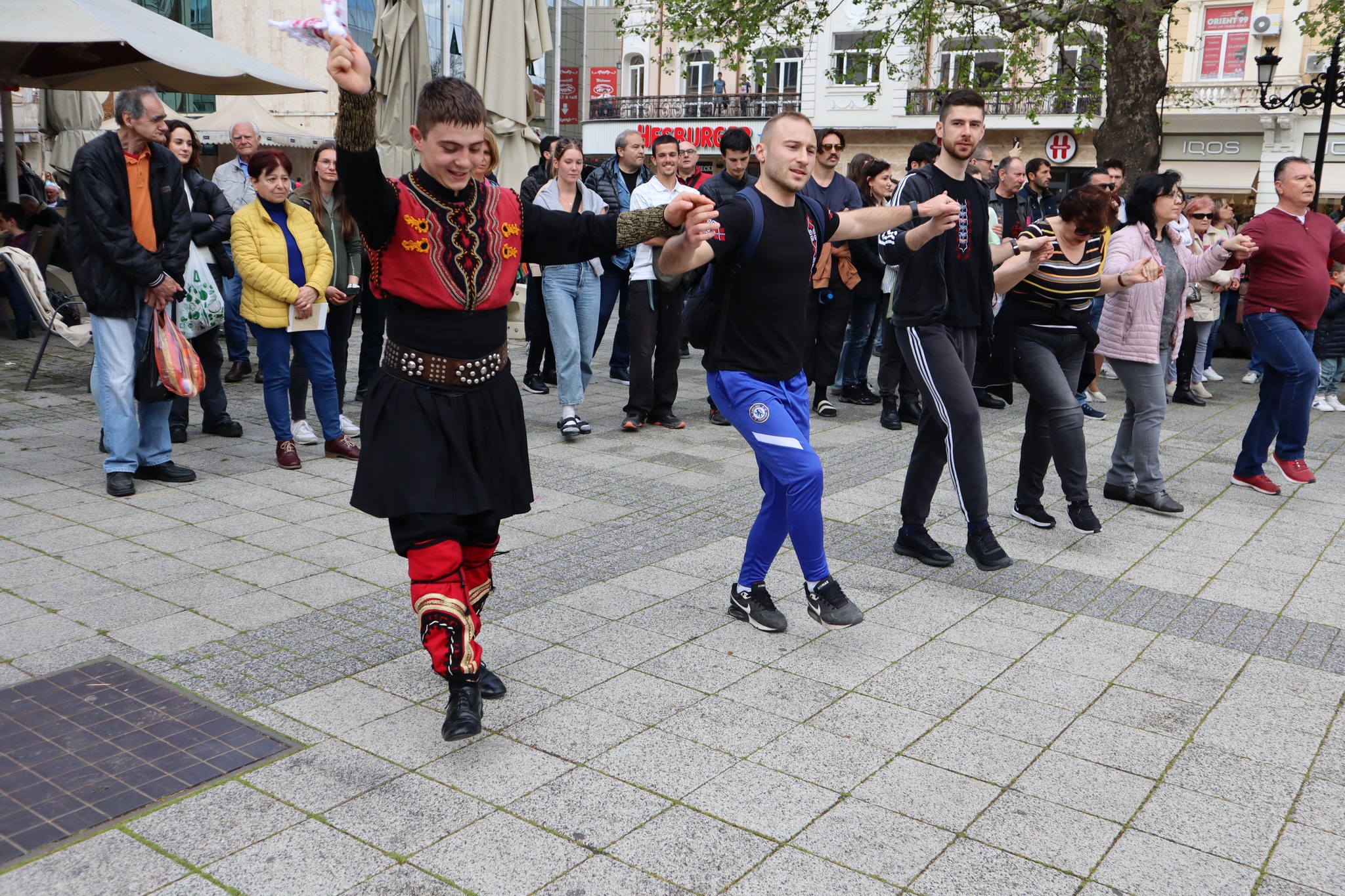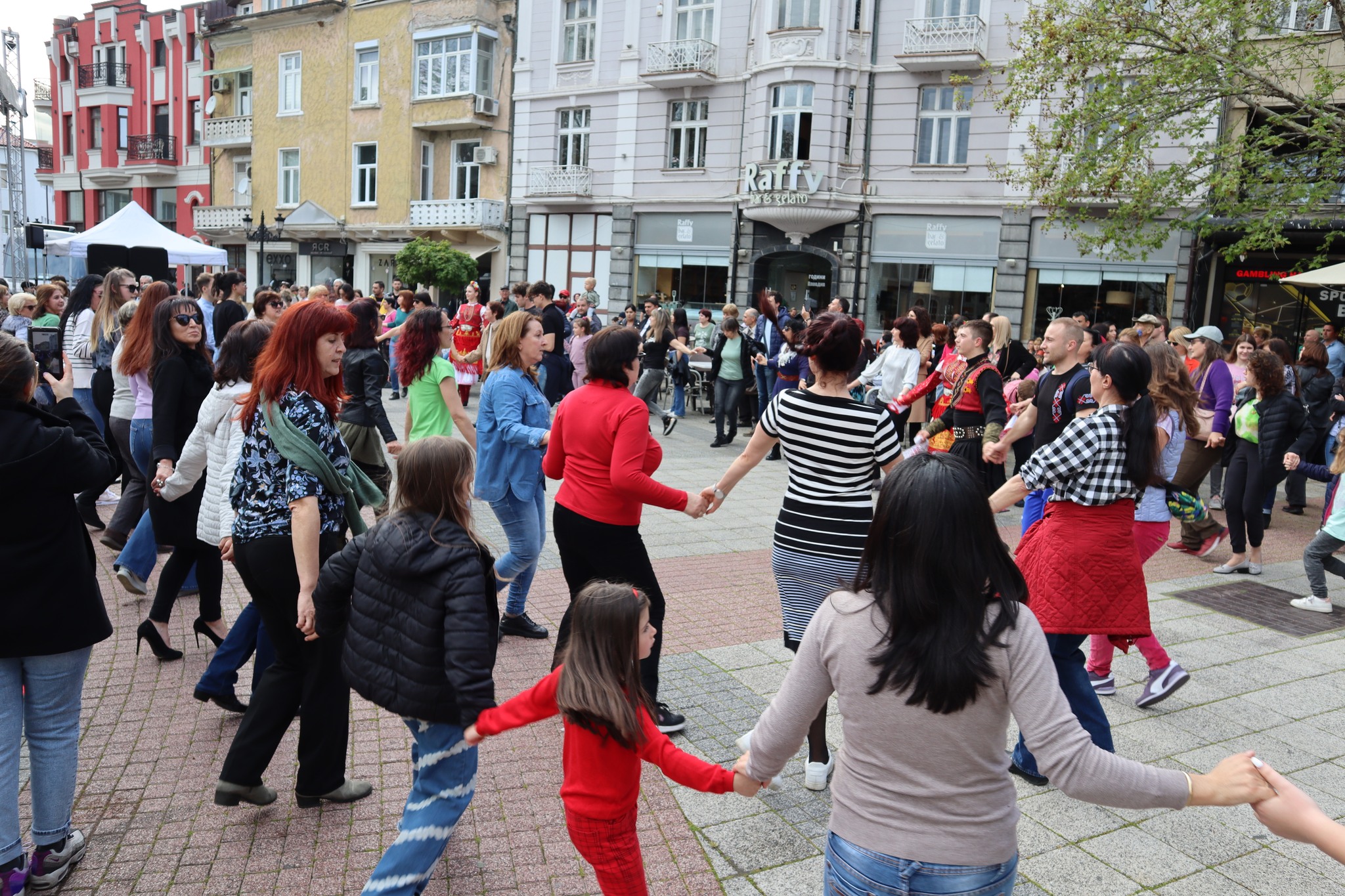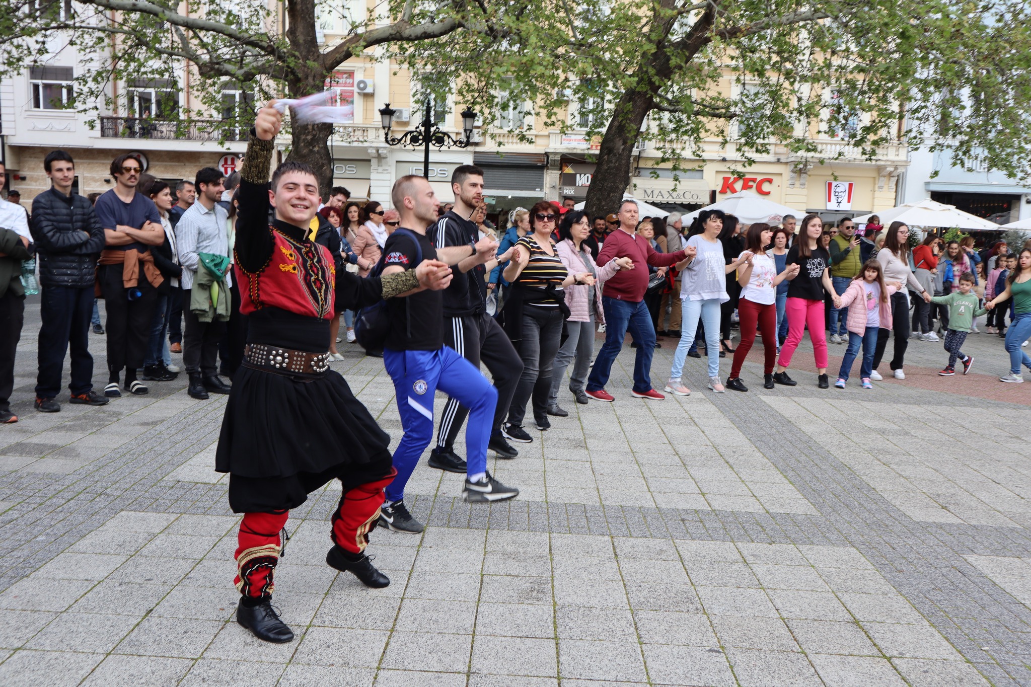 Със своята богата фолклорна стратегия, Николина Чакърдъкова и Неврокопският танцов отбор с доста музика, вихрени танци и обичани национални песни, накараха всички да пеят и танцуват и сътвориха паметен български празник на площада пред Община Пловдив.