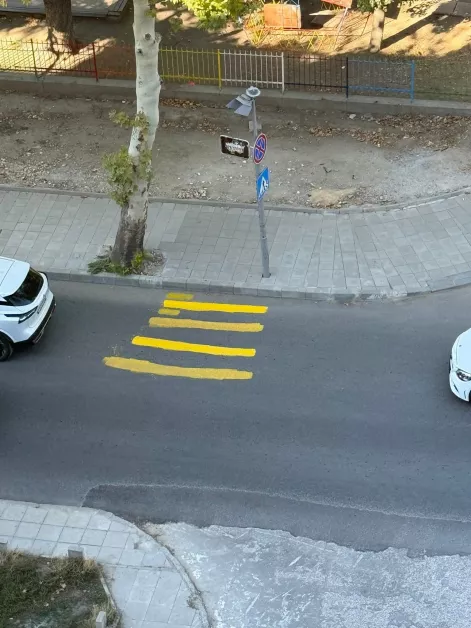 Най-абсурдната пешеходна пътека се появи в регион „ Южен ” на новоасфалтирания бу. „ Ал. Стамболийски ”. Кадри от обществените мрежи демонстрират по какъв начин мъж рисува странни жълти линии с валяк върху новия асфалт, където би трябвало да има пешеходна пътека.