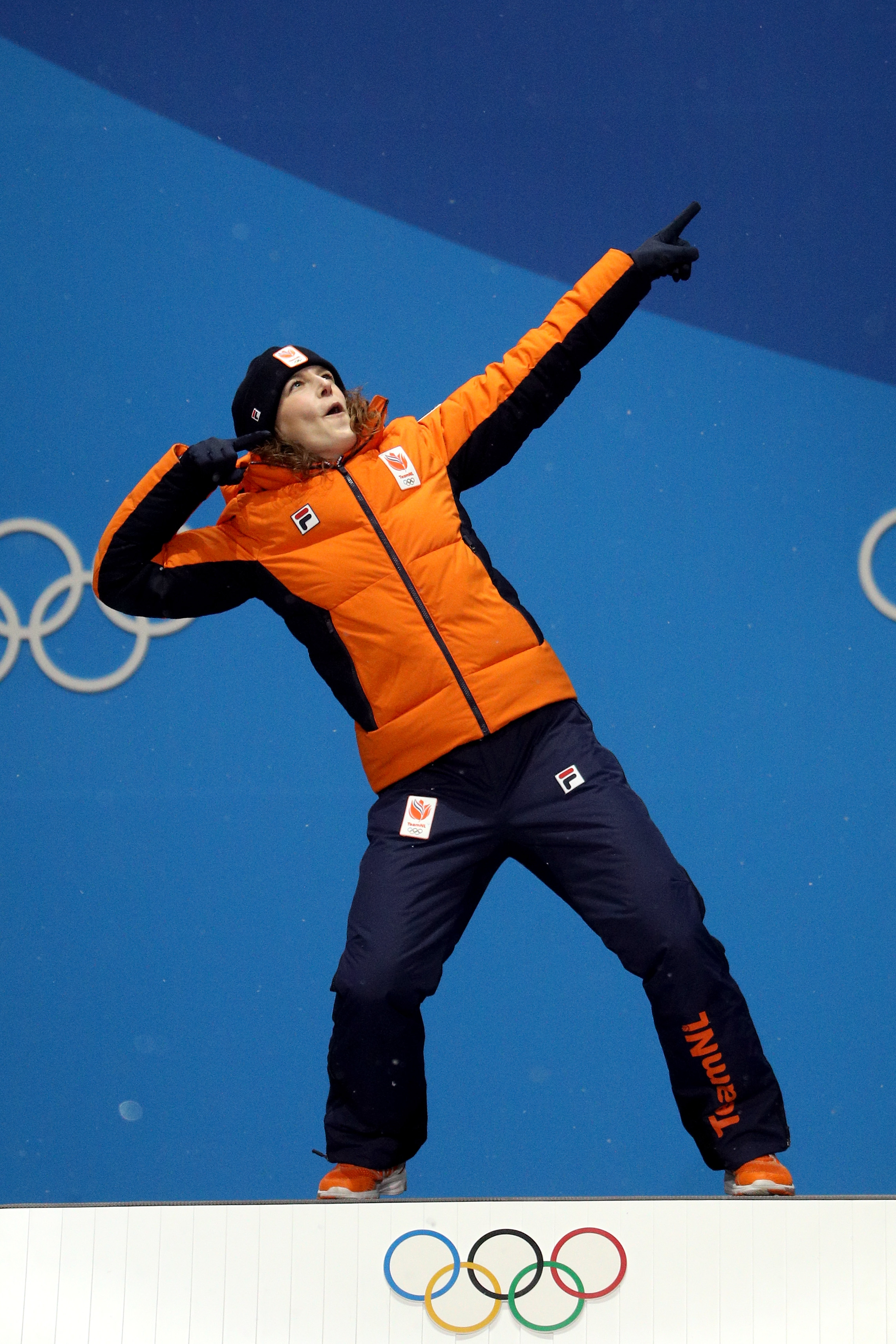 Крамер не е единственият холандски състезател, който отпразнува триумфа си с жеста на Болт. Съвсем като “Светкавицата” отпразнува и Иреен Вюст, която завоюва златото на 1500 м в бързото пързялане с кънки.