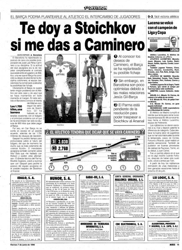 Интернет изданието на Marca разгласява страници от вестници отпреди четвърт век, които напомнят за мощния интерес на Атлети към Ицо. " Стоичков се предлага на Хил ", гласи една от страниците. " Ще ви дадем Стоичков, в случай че ни дадете Каминеро ", написа друга страница, която припомня, че от Барселона имат алтернатива да си върнат назад българина, както и се случва.