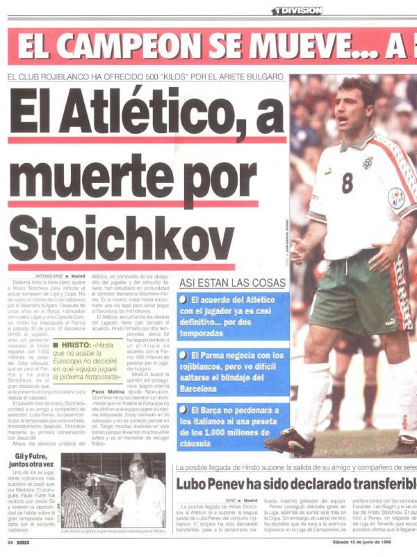 " Атлетико желае досмърт Стоичков ", виждаме от друга страница, на която също по този начин се набива на очи и друго заглавие: " Любо Пенев е разгласен за продажба ". Трансферът по този начин и не се реализира.