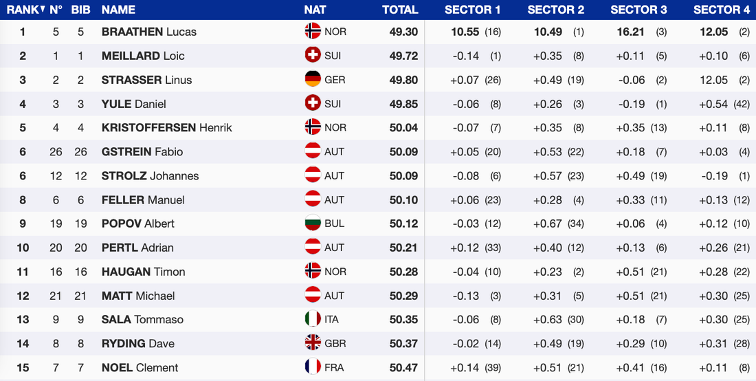 От спусналите се след Алберт състезатели единствен Фабио Гщрайн съумя да даде по-добро него. Австриецът зае равно 6-то място със своя съотечественик Йоханес Щролц, като двамата бяха с 0.03 секунди по-бързи от българската звезда.