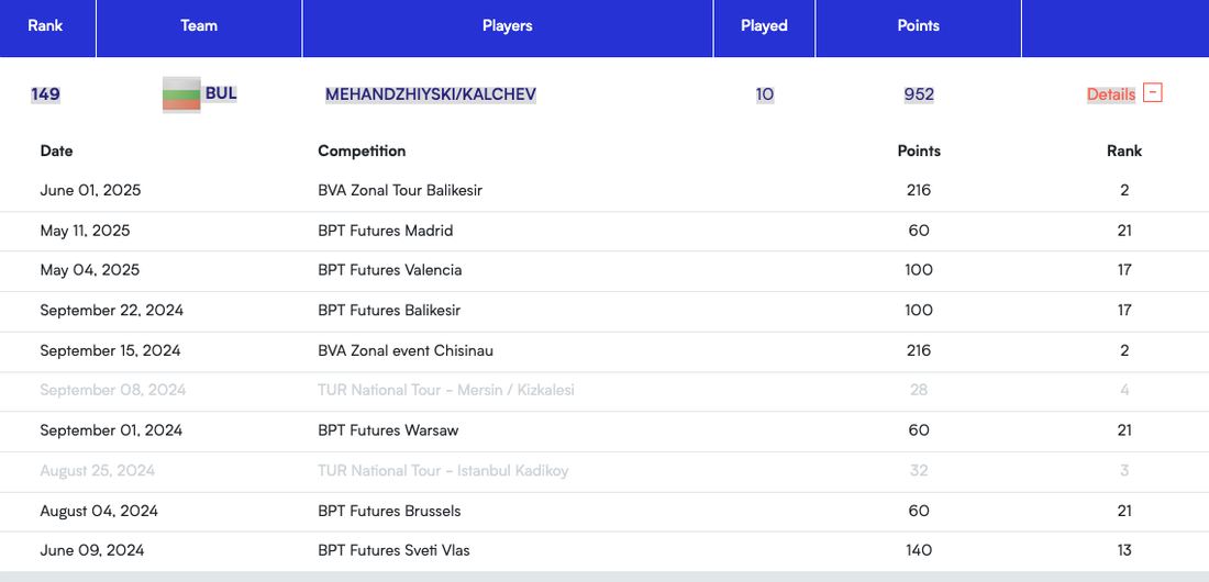За присъединяване си на Балканиадата Калчев и Механджийски завоюваха 216 точки за международната класация и от 188 позиция към този момент се изкачиха до 149 място в последната класация.