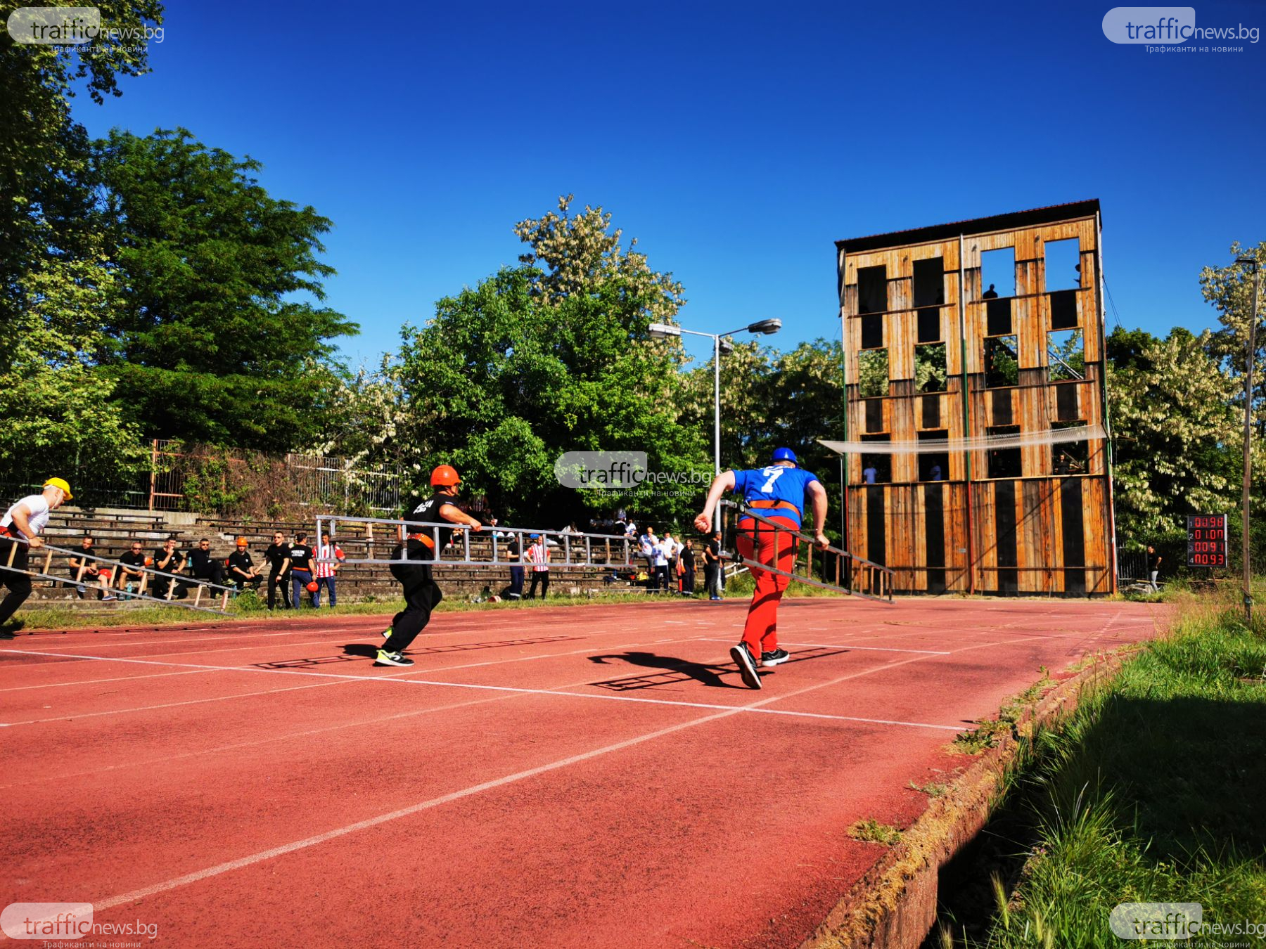 Най-добрите пожарникари от Пловдив и региона мерят сили в съревнование по пожароприложен спорт на Лекоатлетически стадион наоколо до Гребния канал.