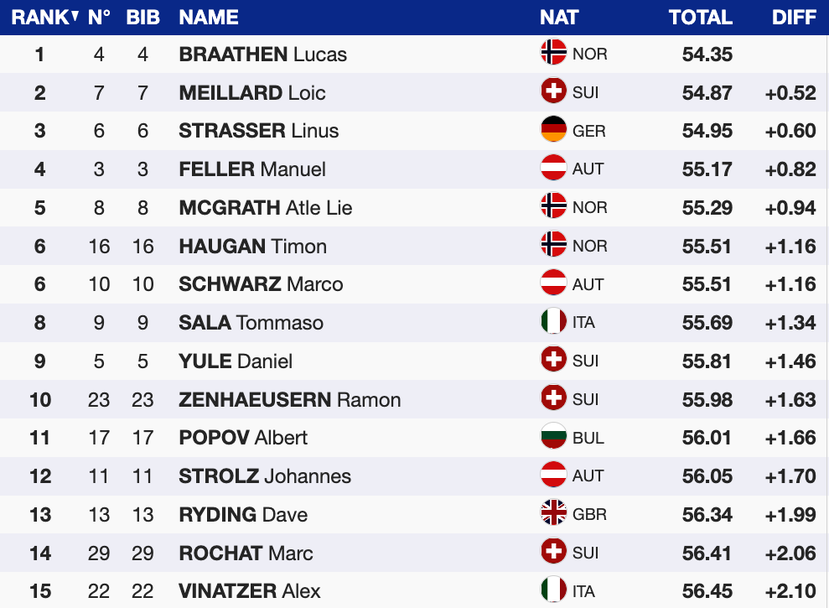Водачът в класирането в дисциплината преди днешния старт и победител от надпреварата в Гармиш-Партенкирхен (Германия) в сряда Хенрик Кристоферсен не съумя да се класира за втория манш. Норвежецът бе първи по трасе, само че позволи неточност в неговата среда, която му коства повече от 4 секунди и по този начин той остана... на финала. Освен него олимпийският първенец в слалома от Пекин 2022 Клеман Ноел (Франция) също няма да кара във второто втурване след неточност във финалната стръмна част, която го извади от надпреварата.