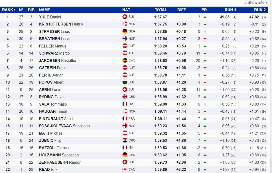 След този старт водач за дребната купа в слалома е Лукас Бротен със 150 точки, пред Даниел Юл със 136 и Мануел Фелер със 125. Алберт Попов е на 11-тото място с 50 точки.