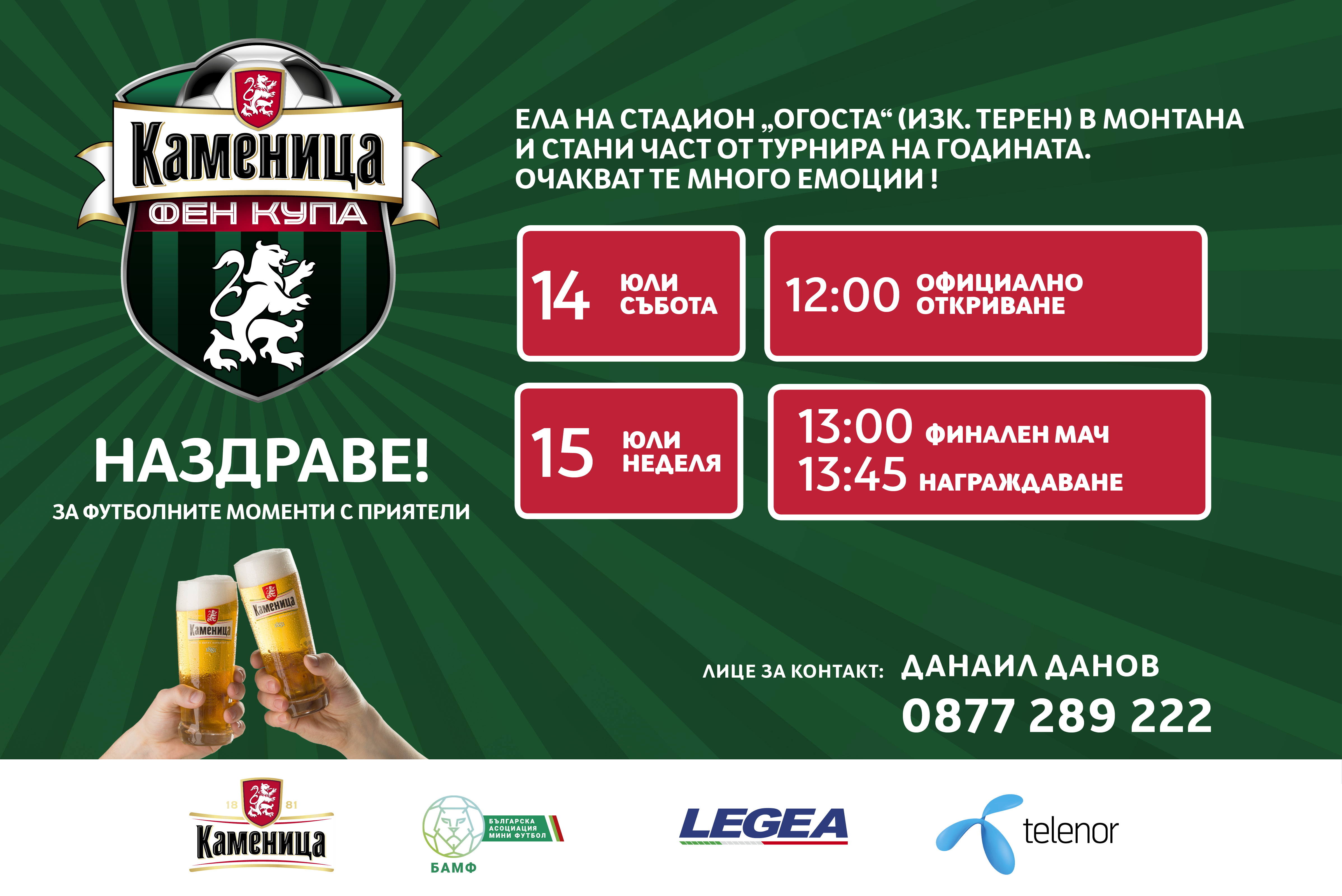 Програмата на шампионата в събота ще протече с мачовете от груповата фаза, а в неделя ще продължи с директните елиминации. Паралелно с мачовете на терен ще се организират десетки игри, провокации и томболи и стотици посетители ще се снабдят с дребни и огромни награди като бирена чаша, футболна топка, GPS фитнес гривна и 365 литра Каменица за шерване с другари.