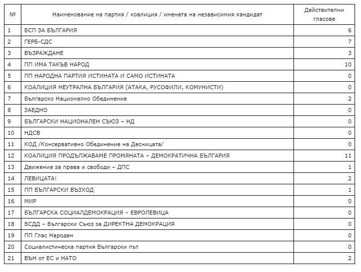 Най-голяма поддръжка в пловдивския затвор е получила обединението сред ПП-ДБ. Общо 11 души са дали своят вот за тях, а 10 са дали своя избор за Има Такъв Народ. 7 са гласовете за ГЕРБ, а 6 са бюлетините са Българска социалистическа партия. „ Възраждане ” са подкрепени от трима души.