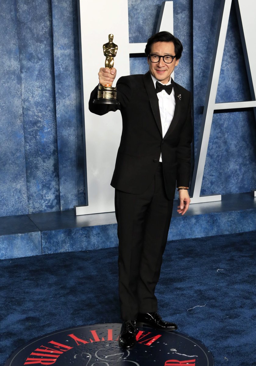 Ке Хуи Куан , който завоюва премията за най-хубава поддържаща мъжка роля за " Всичко на всички места едновременно " произнесе прочувствена тирада: " Майка ми е на 84 години и е у дома и гледа. Мамо, преди малко завоювах " Оскар "... Моето странствуване стартира на една лодка. Прекарах една година в бежански лагер. И някак си се озовах тук, на най-голямата сцена в Холивуд. Казват, че такива истории се случват единствено във филмите. Не мога да допускам, че това се случва на мен. Това - ТОВА - е американската фантазия ", съобщи Куан.