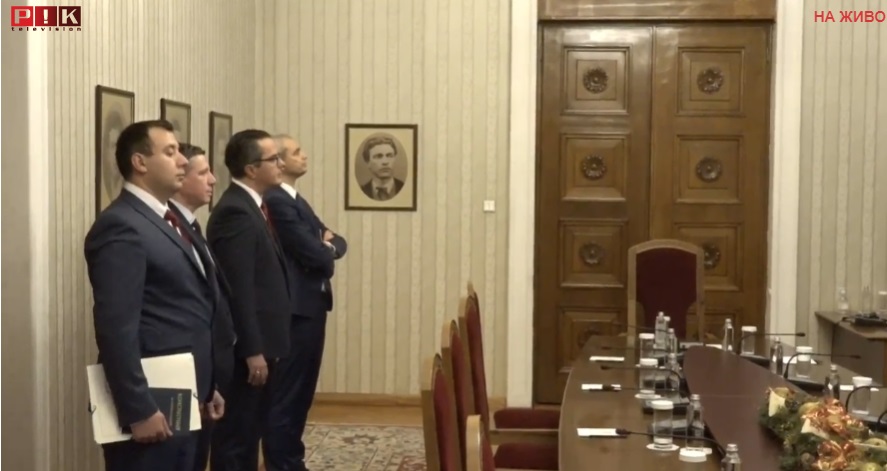 От " Възраждане " в президентството са Костадин Костадинов, заместниците му Цончо Ганев и Петър Петров, както и организационният секретар на партията Николай Дренчев.