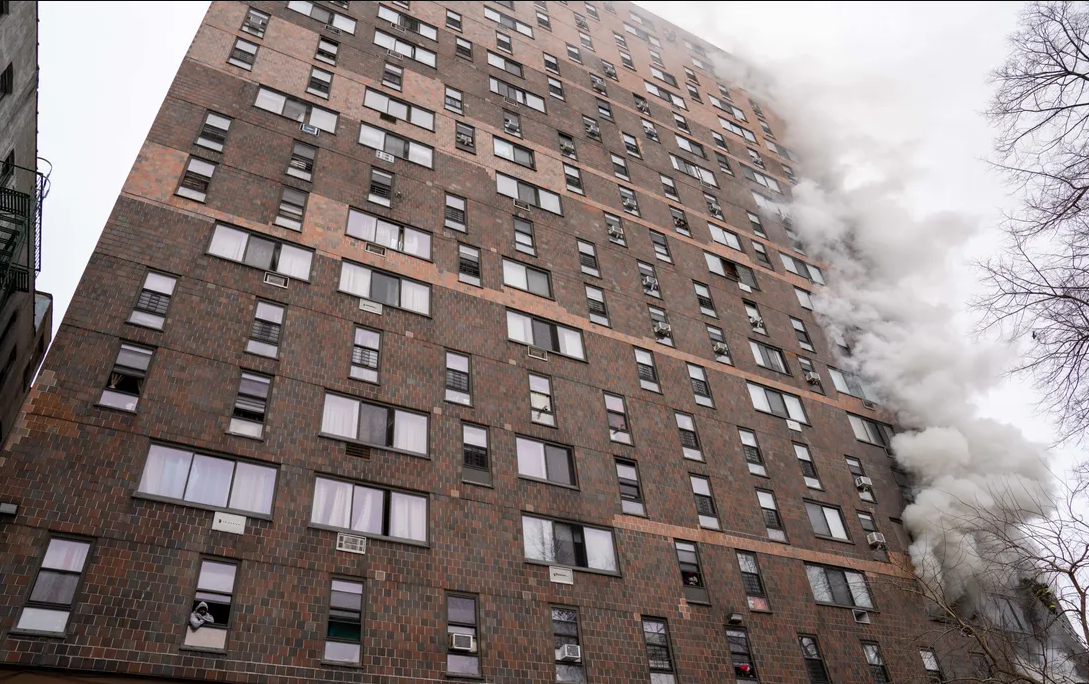 Пожарът е избухнал на 19-етажна постройка в Западен Бронкс. Според пожарникарите пламъците са избухнали на третия етаж на постройката.