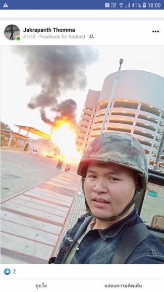 По-рано през днешния ден стана ясно, че нападателят е боен от тайландската войска - ефрейтор Чакрапант Тома. Той простреля командира си и двама души във боен лагер, след което избяга с крадена кола. На път за комерсиалния център мъжът стрелял по цивилни. Той излъчи дейностите си във Фейсбук и след известно време страницата му беше блокирана.